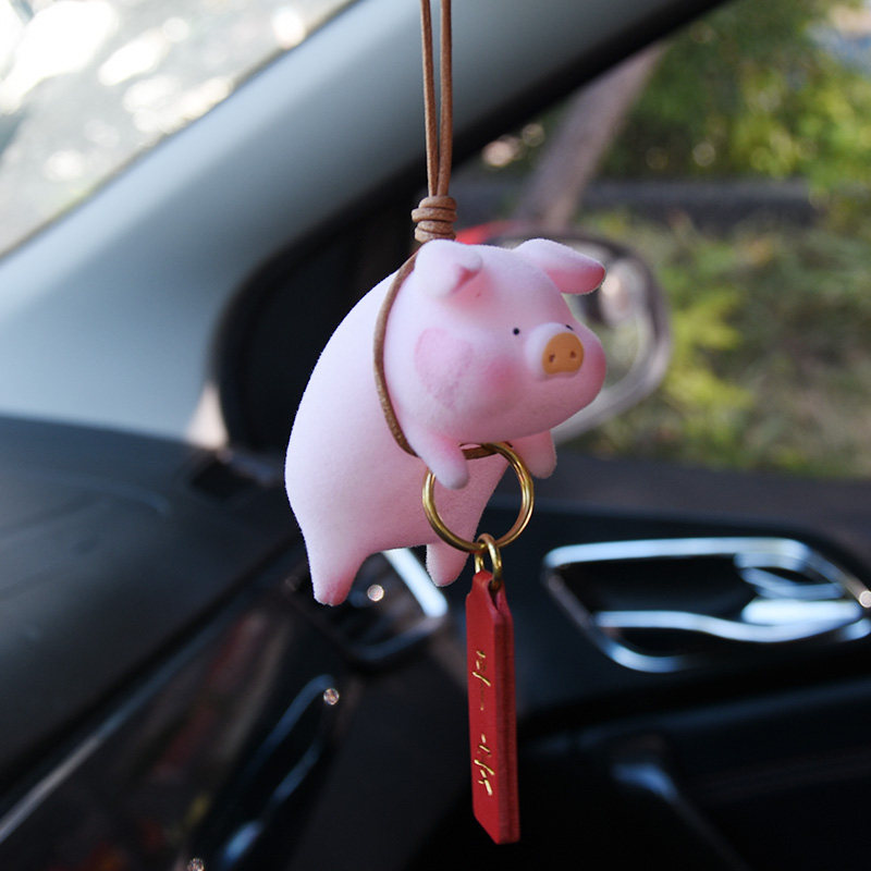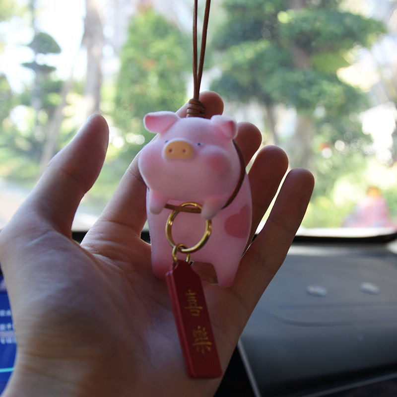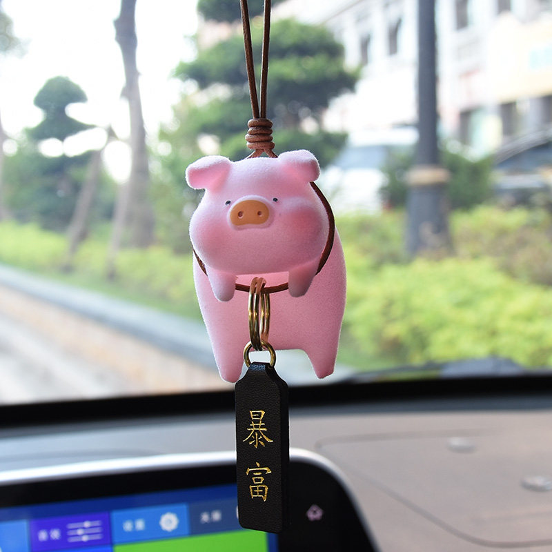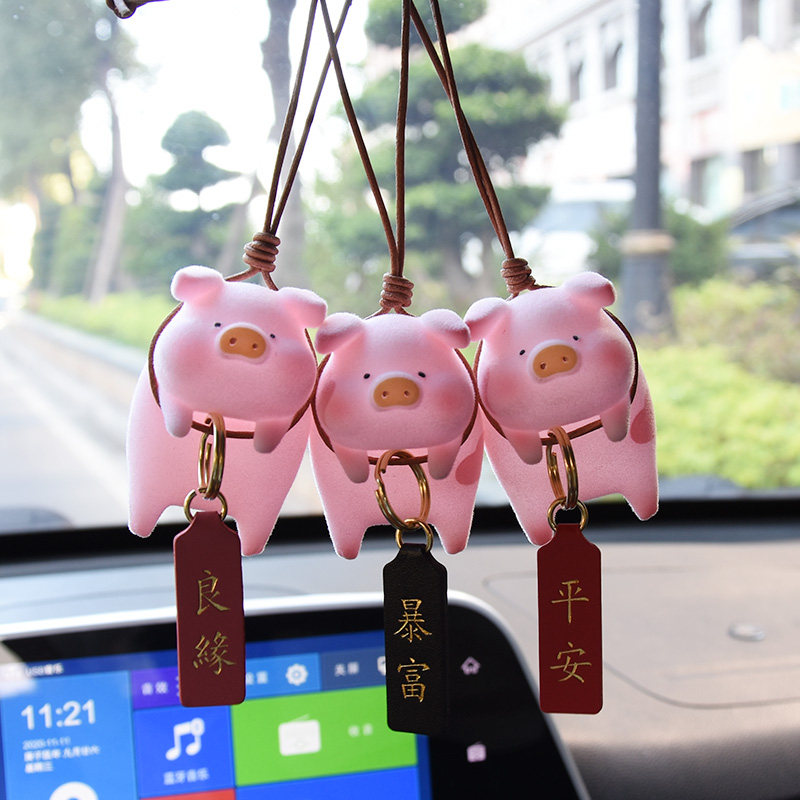 Cute little piggy rear mirror car pendant in car pendant pendant pendant pendant hanging ornament mesh red car decorate upscale Ping An