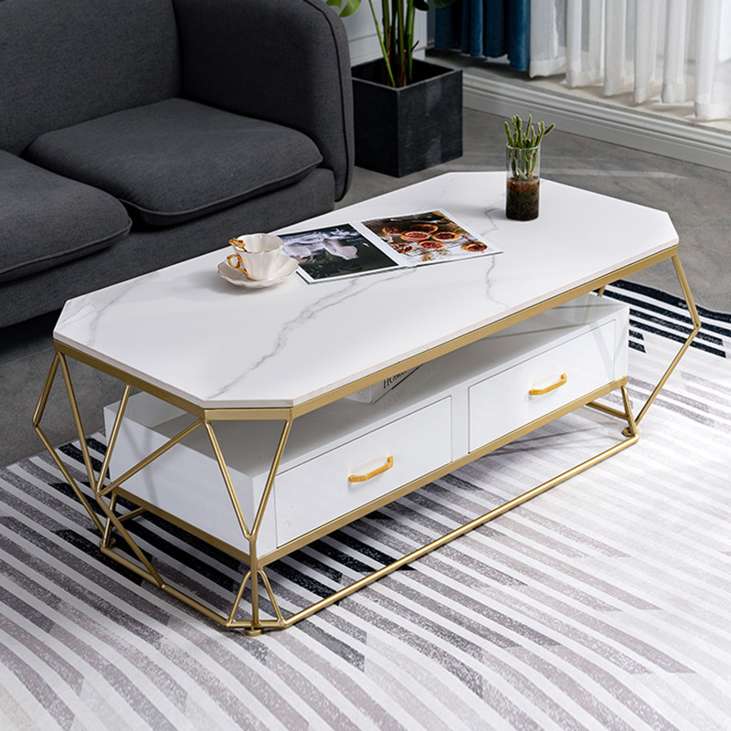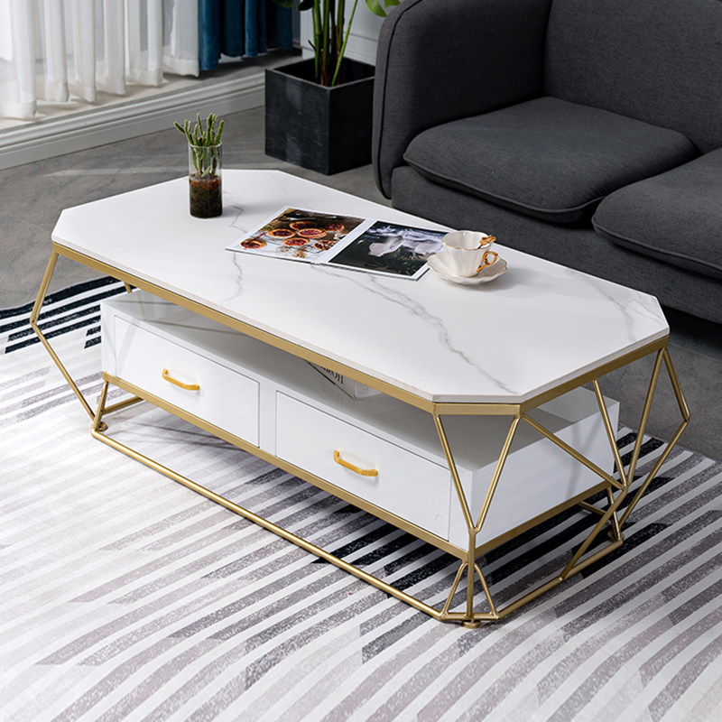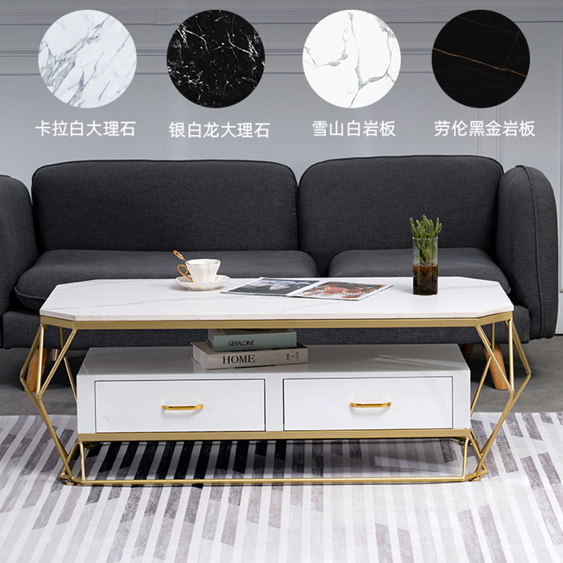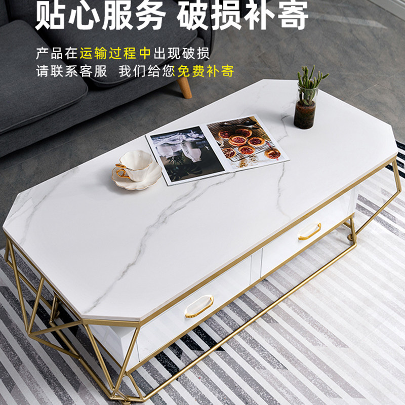 Light extravagant rock plate tea table Nordic small family type marble living room rectangular minimalist modern tempered glass home table