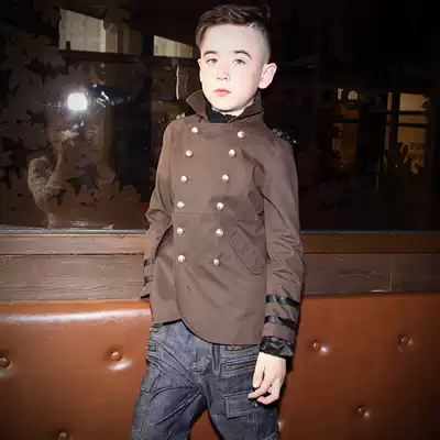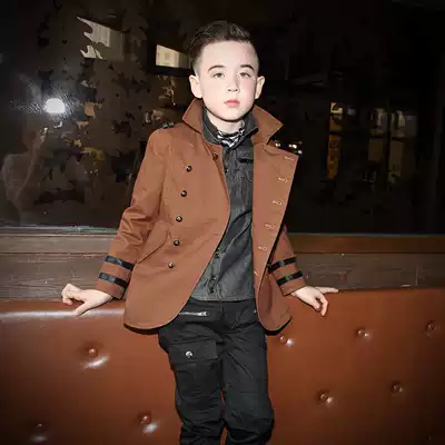 Le Wenxi children's clothing spring new male middle child British double-breasted medium long short version of windbreaker cotton coat teenager