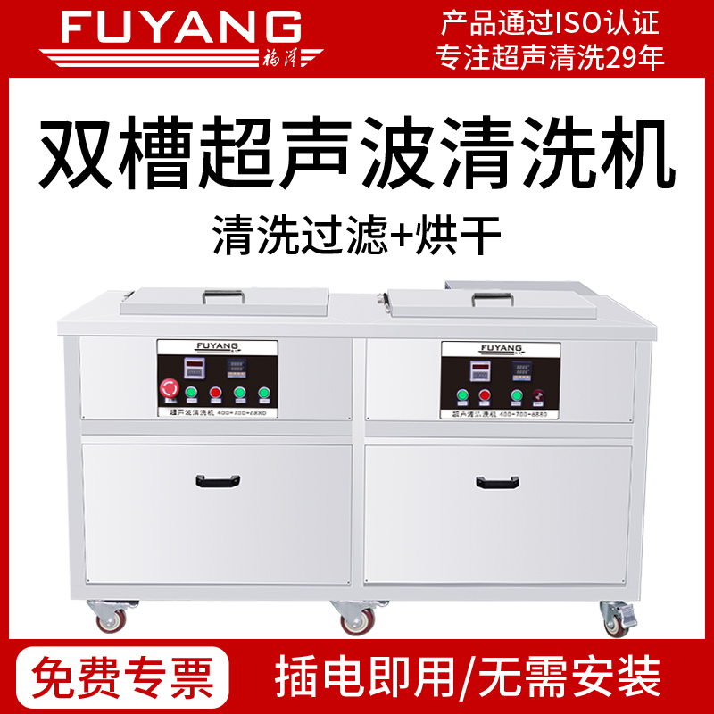 Industrial Ultrasonic Cleaner Double Sink High Power Large Capacity Steam Distribution Engine Oil Removal Decontamination Fuyang Factory
