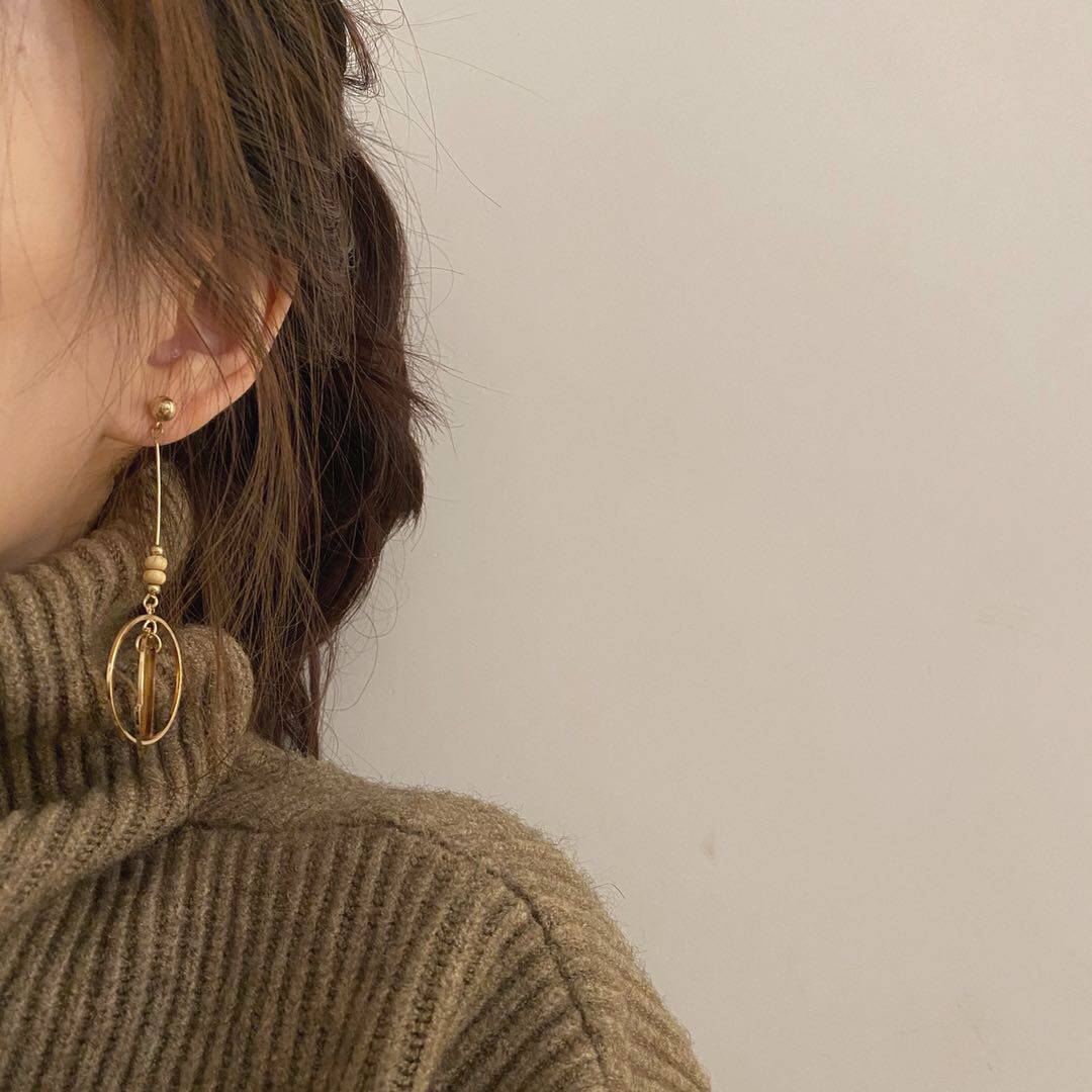 Brief word for a long version of the ear pendant 2021 new stylish retro multilayer circle Circle Temperament Port with no earbugles