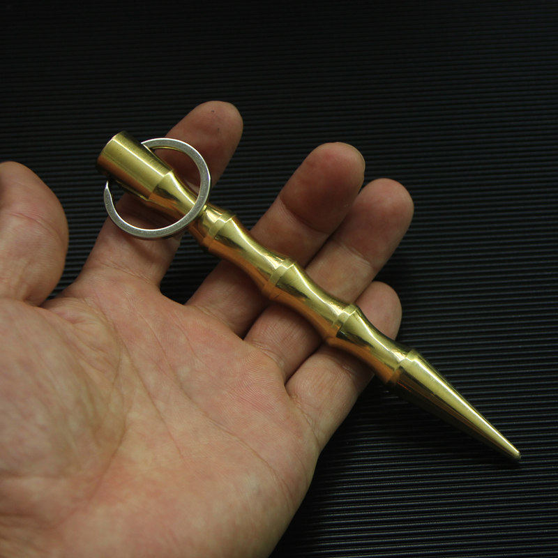 Handmade brass cool sticks pure hand polished pure copper K stick bamboo stick stick stick paste play defensive broken window outdoor tools