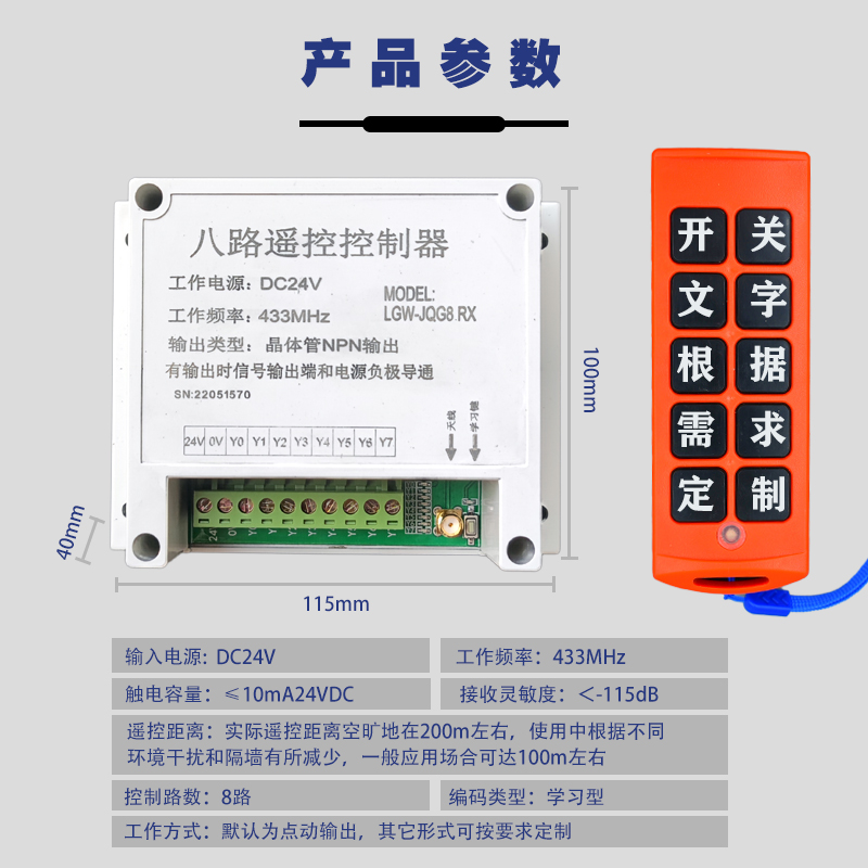24V8-way wireless remote control switch PLC special custom remote control jog self-locking interlocking distribution box industrial control