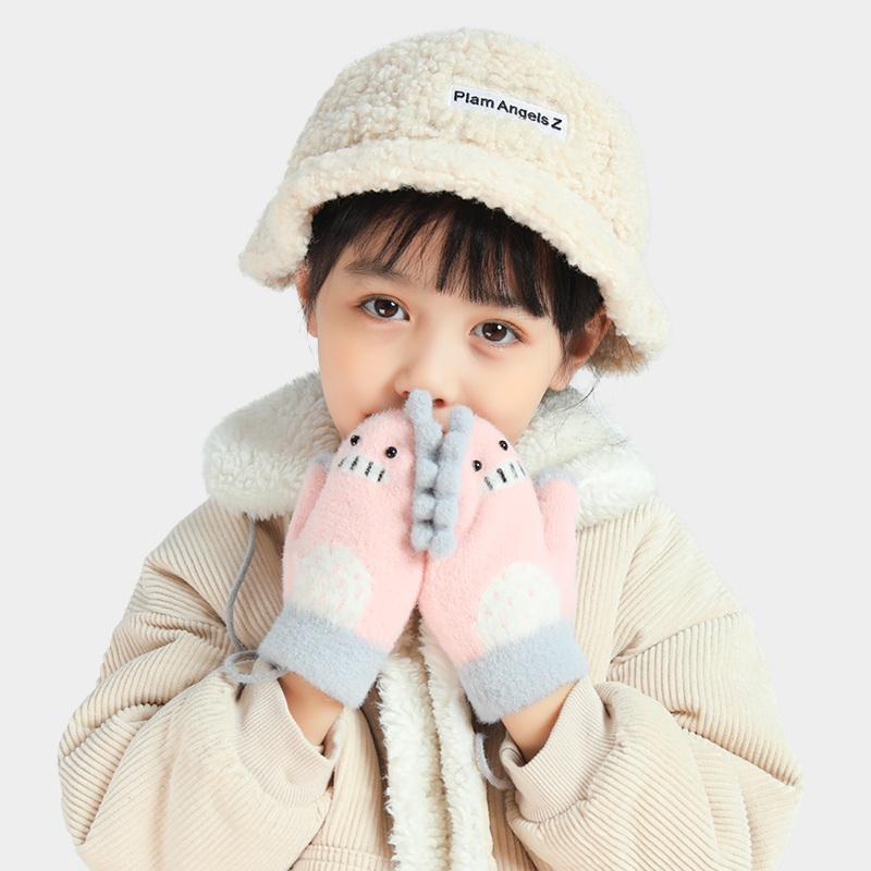 Children's gloves winter baby baby's even finger gapped hanging rope cute boy girl's baby boy warm winter-Taobao