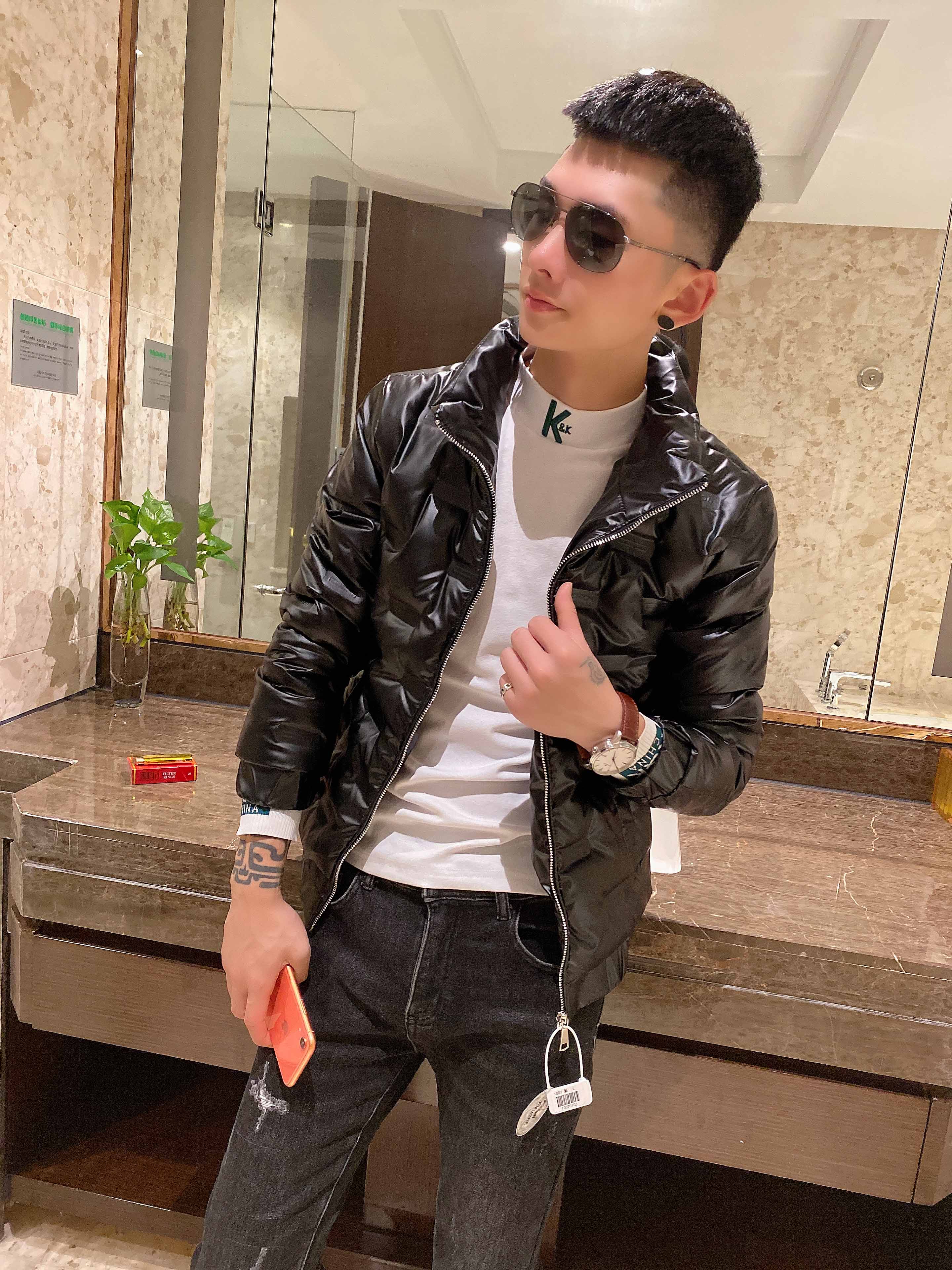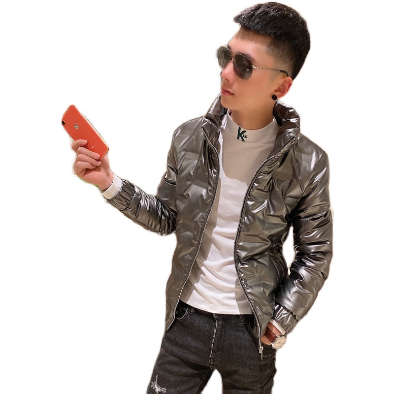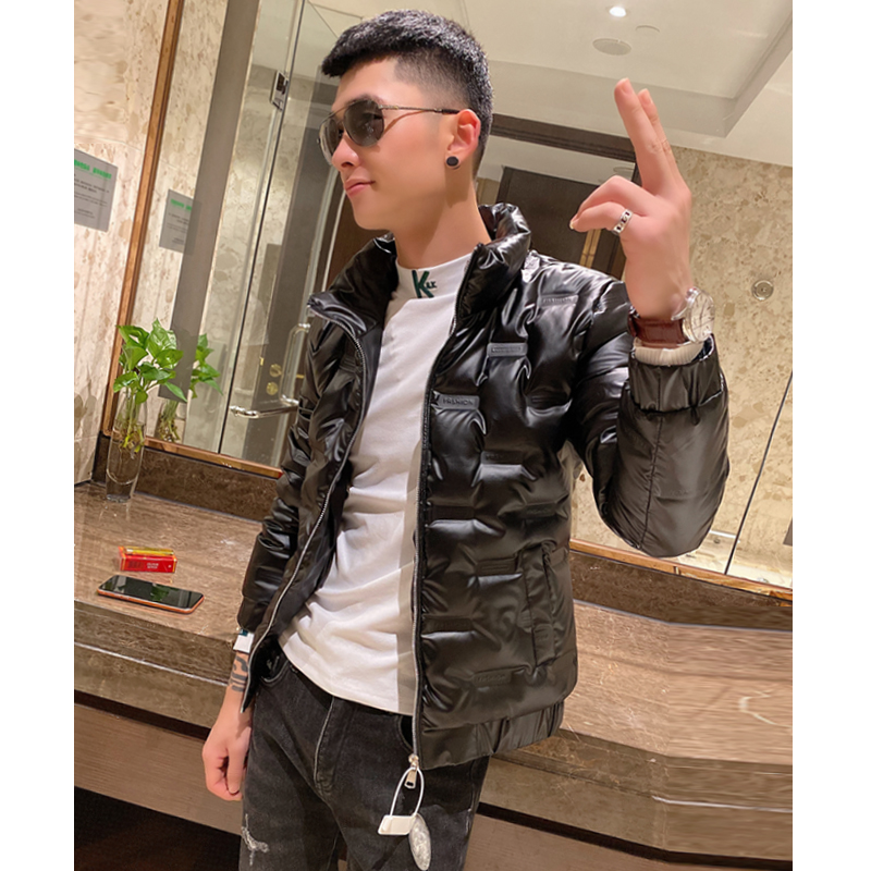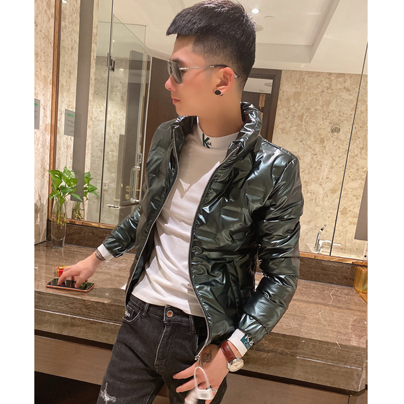 Spiritual guy slimming bright face down jacket youth outer wear vitality cotton clothing trendy men's stand-up collar thickened coat tops for men