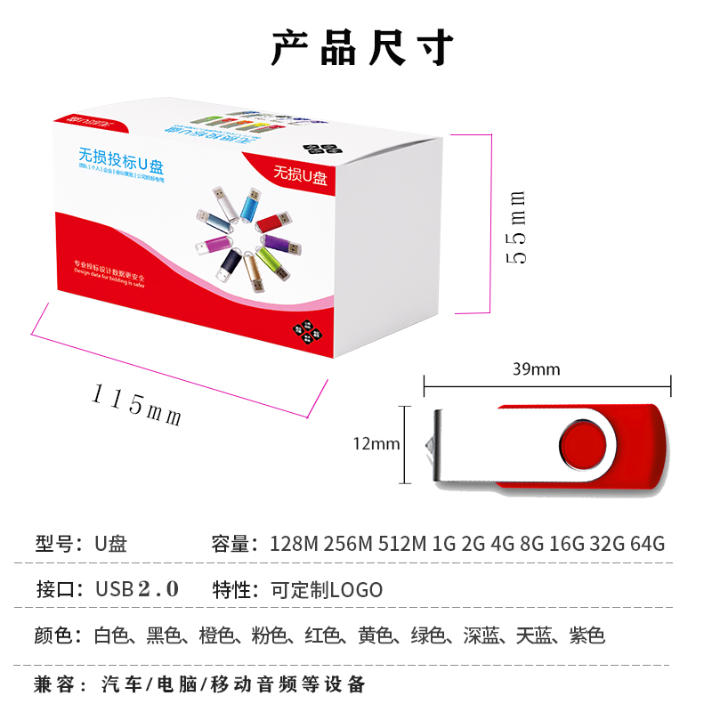 (10 boxed) no distortion tenders small capacity with body disc 128m 512M 1g 2g 4GU disc customised logo