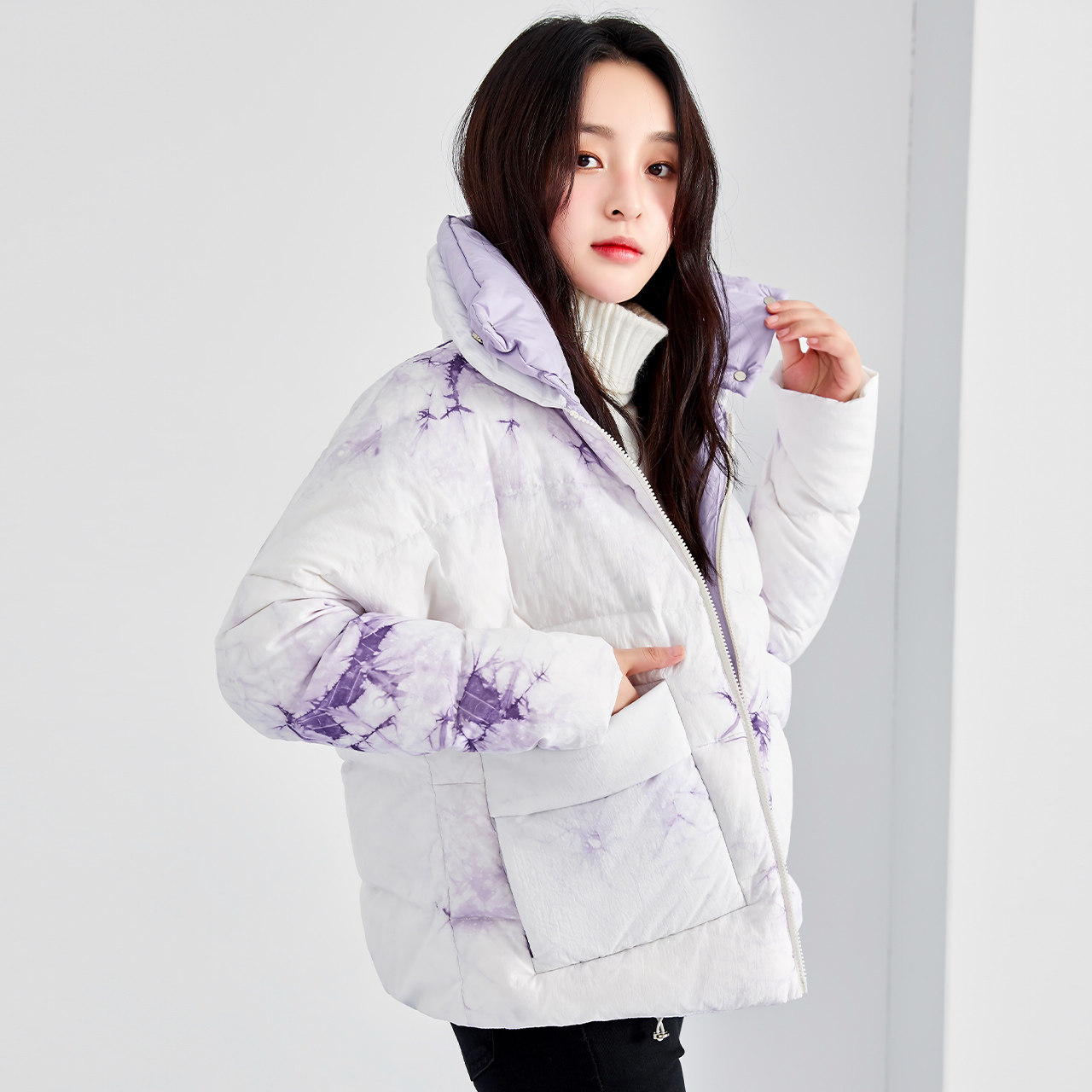 Flying in the snow 2020 autumn and winter new stand-up collar women's casual fashion short Chinese style gradient warm coat down jacket