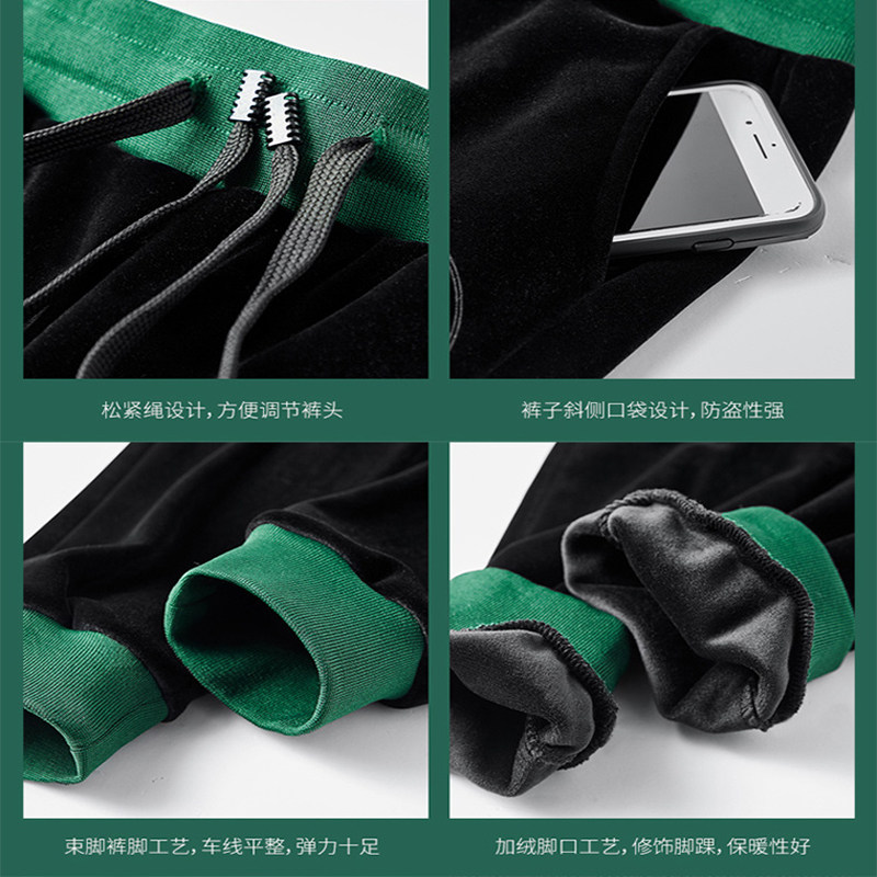 Rich bird plus velvet heating pants men's casual stand-up collar two-piece men's winter outdoor bundled feet sports suit men