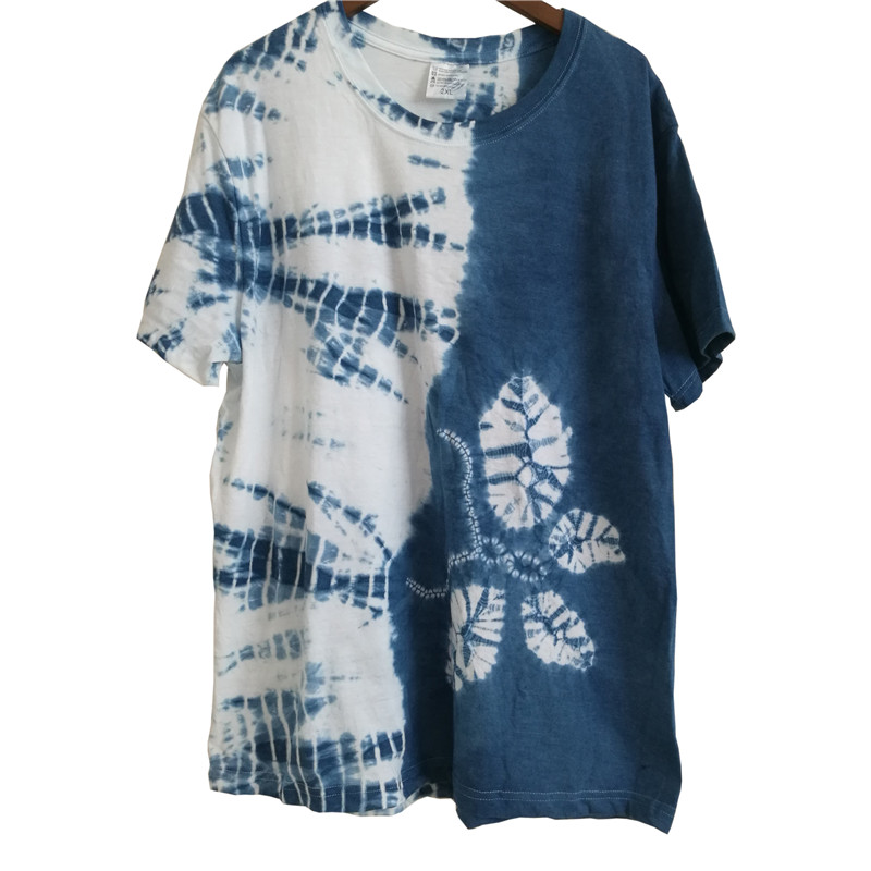 Zdyeing Clothes Great Rational Yunnan White People Handmade T-shirt Straw Wood Ash Plant Blue Dye Pure Cotton Men And Women Short Sleeves