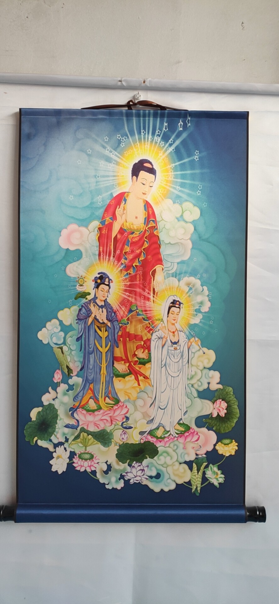 (Pwilling Culture) Western Three Holy Citation Drawing silk Scrolls Buddha Hall Hanging Paintings Customizable