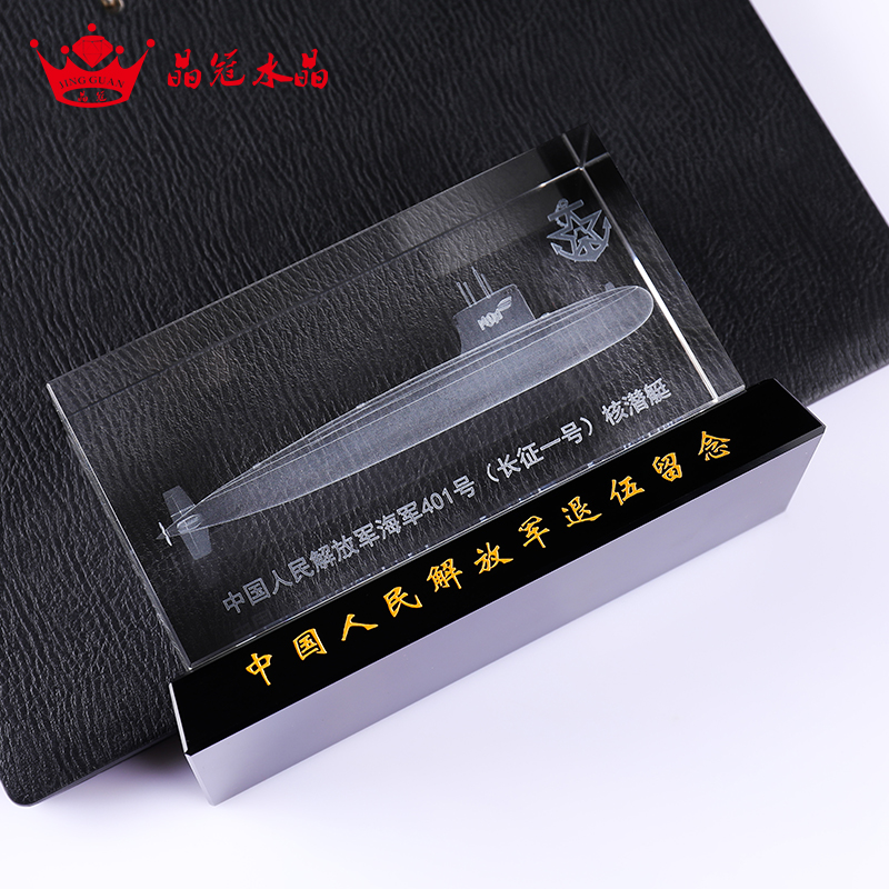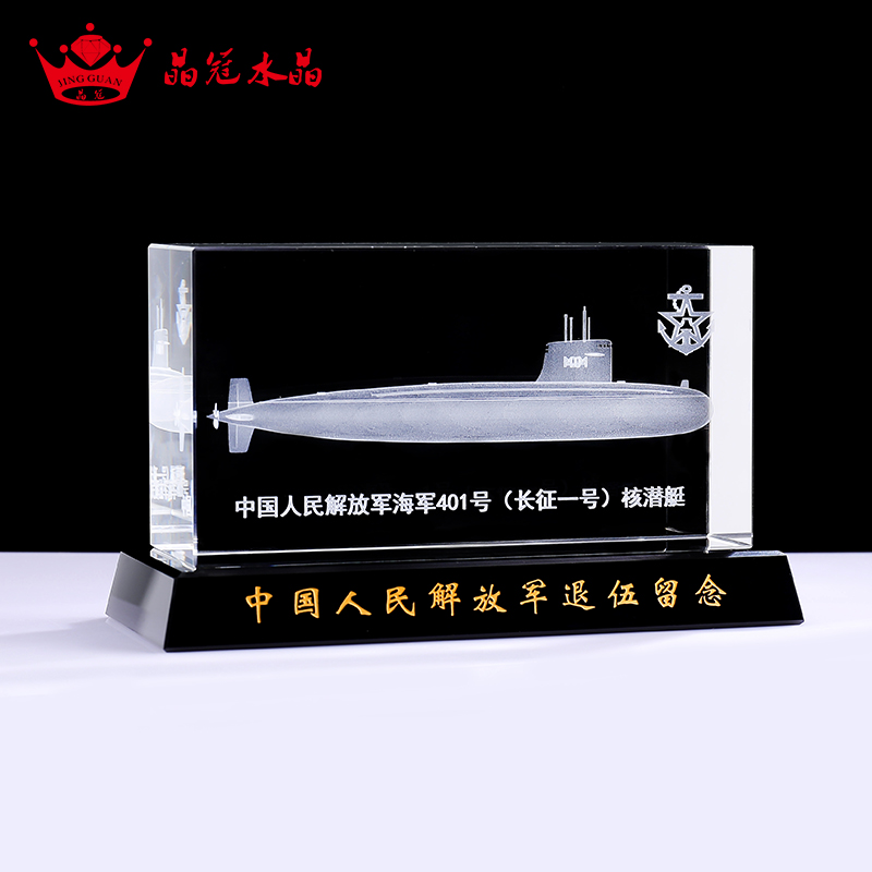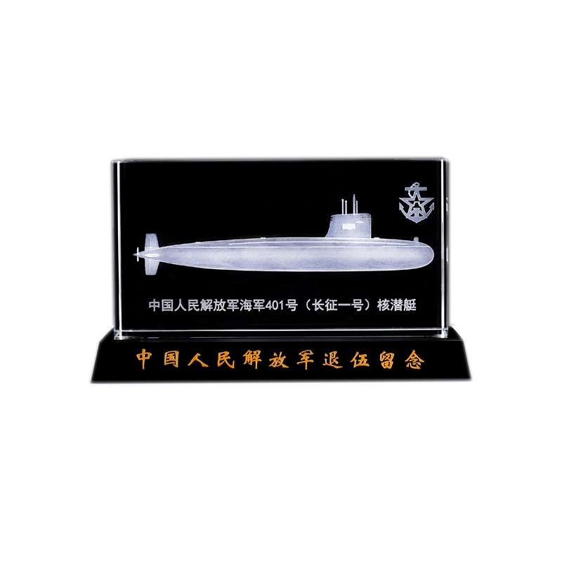 Hot selling marine nuclear submarine 3d three-dimensional crystal laser engraving model ornaments custom veterans souvenirs