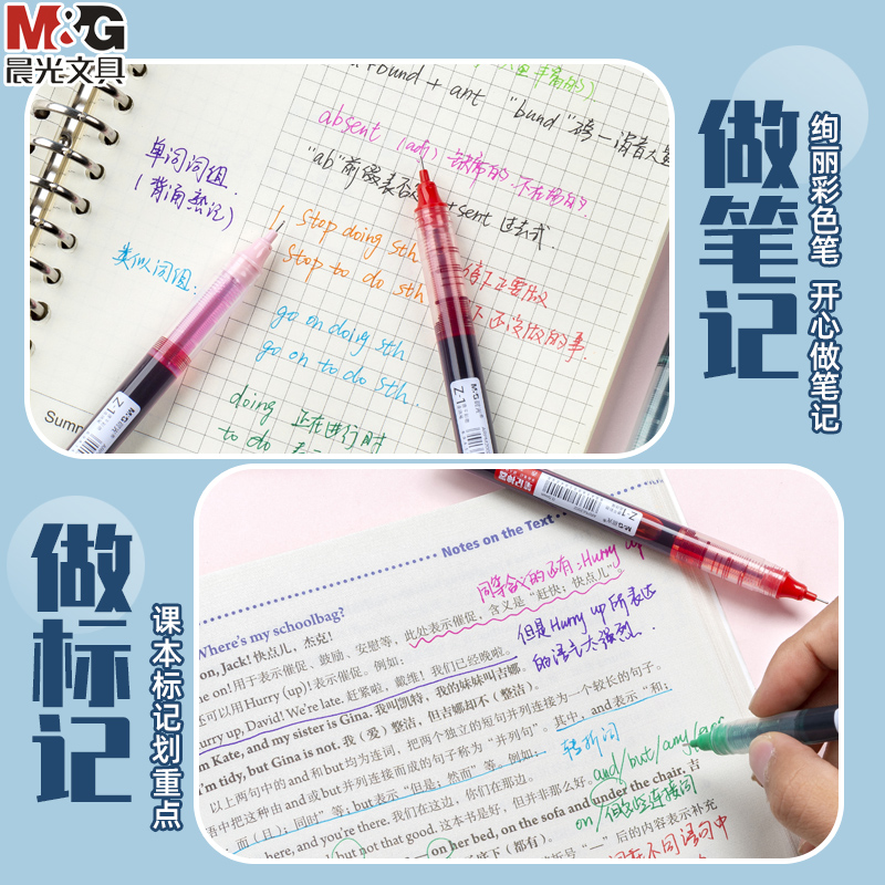 Morning light color neutral pen speed dry straight liquid walking bead water pen student with needle tube head to make notes special color pen artifact multi-color note-taking pen set water-based red pen color ballpoint pen stationery