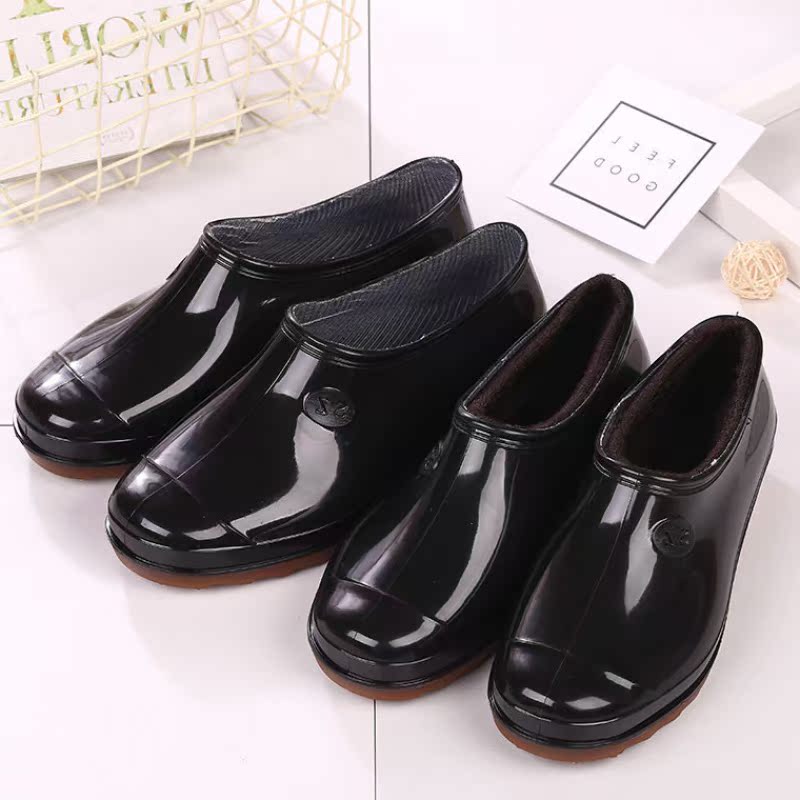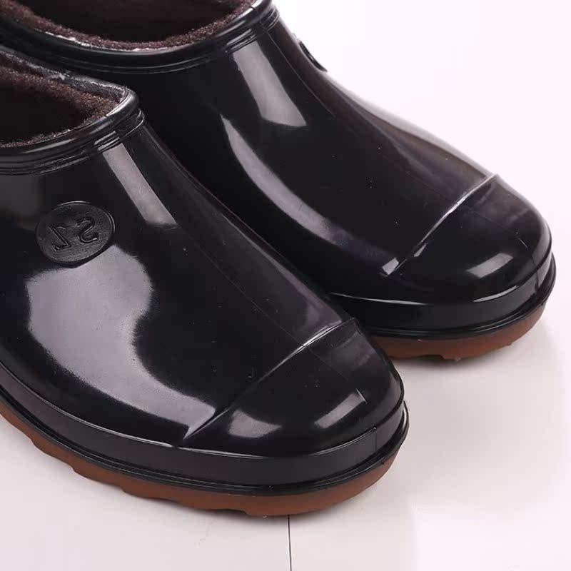 Winter plus cotton with plush chef non-slip waterproof shoes plus plush cotton rain boots rain boots overshoes men's low top fashion