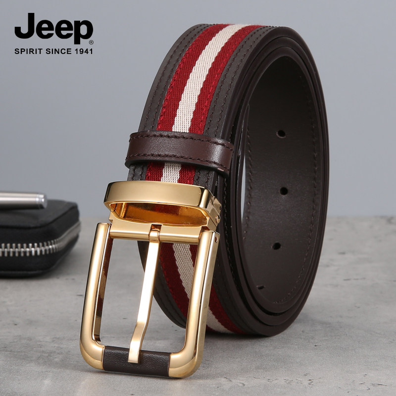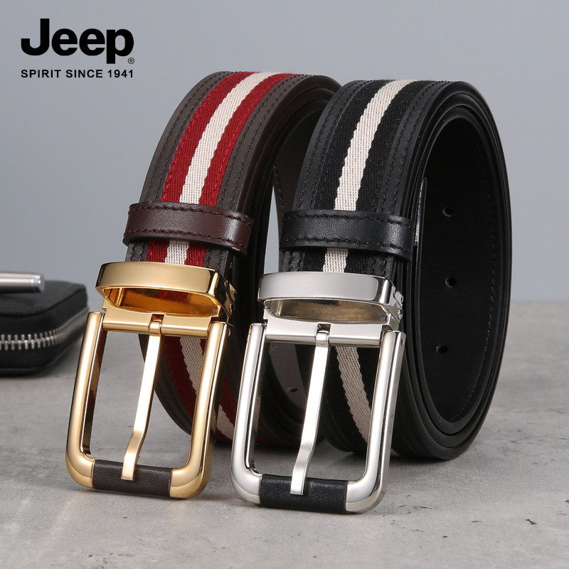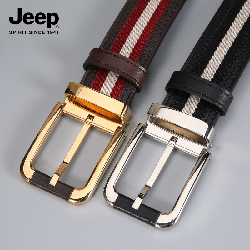 jeep jeep fashion simple canvas first layer cowhide men's belt pin buckle youth business all-match belt pure copper buckle