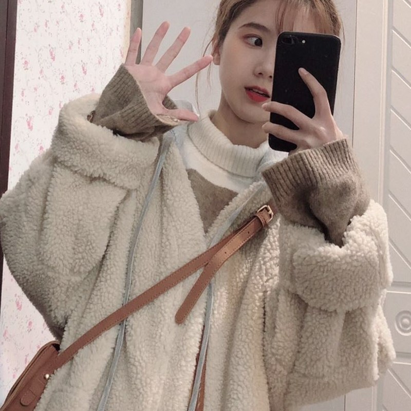 Lamb wool cotton clothes women cotton clothes 2021 Autumn winter new chic cotton padded jacket with thickened Korean version loose jacket in long version