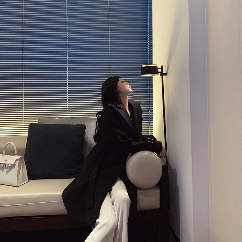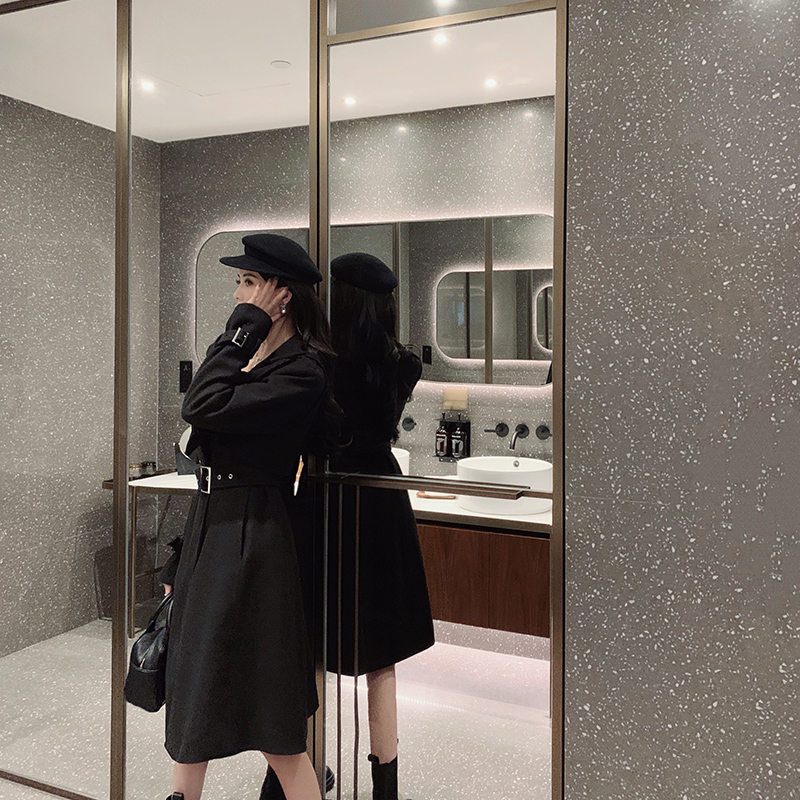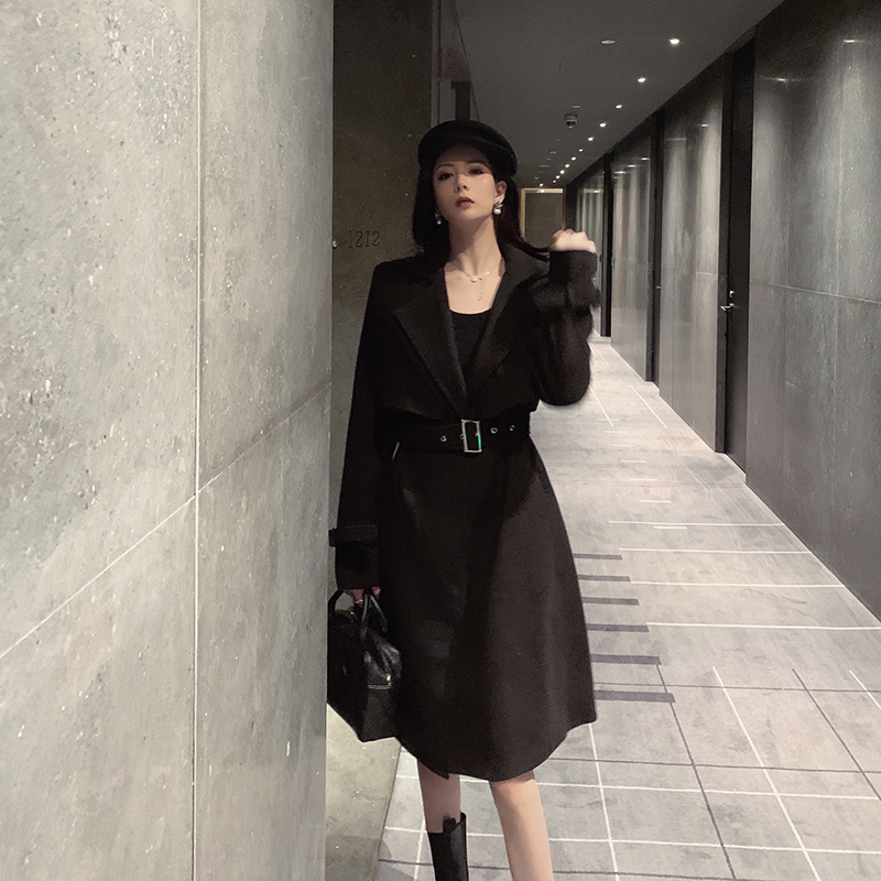Suit suit Female Inn Wind Han version Wind dress design Sensation Little Crowd 2021 Winter Black Son Jacket Woman medium long version