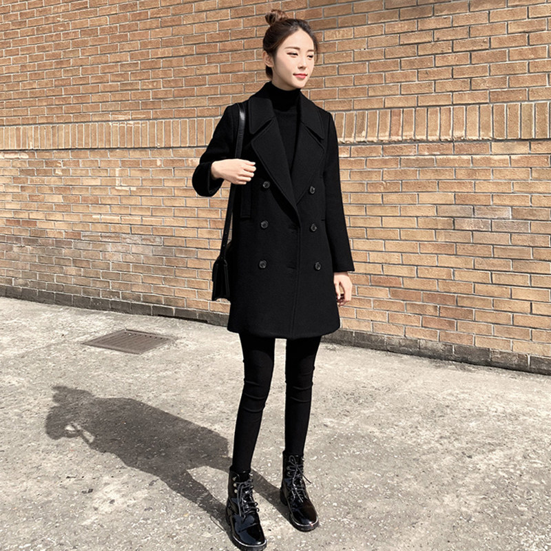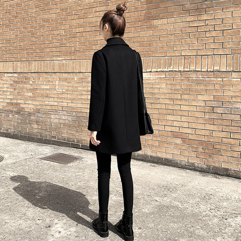 Woolen coat women's 2022 new Korean version loose medium-length version Hepburn style long-sleeved small cashmere coat army