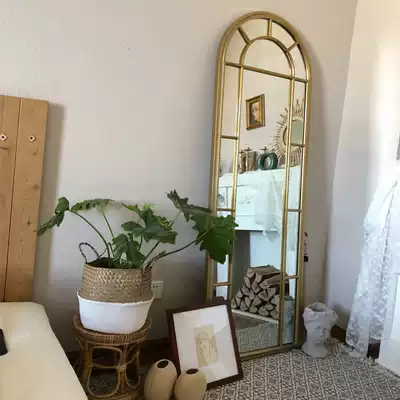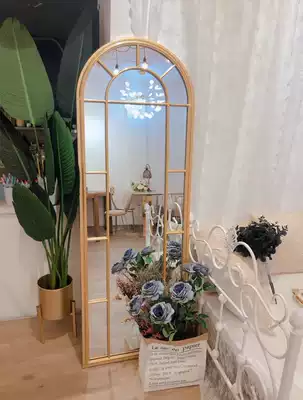 Nordic retro wrought iron full-length mirror Floor-to-ceiling full-length mirror Wall-mounted mirror Wall-mounted curved fake window metal decorative mirror