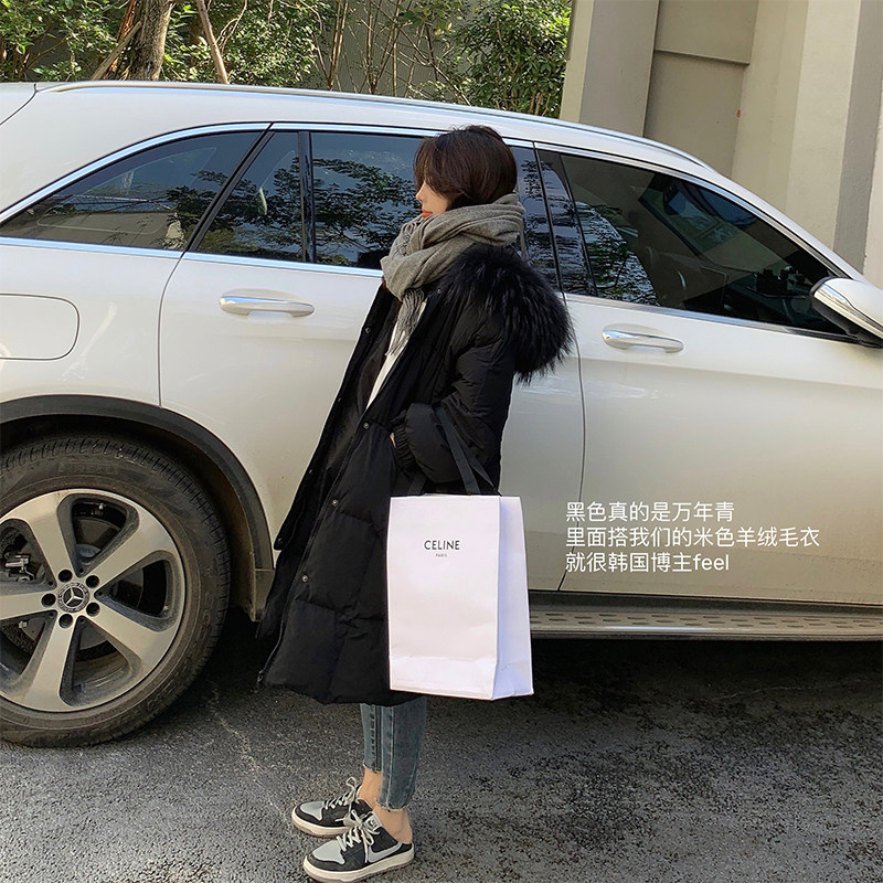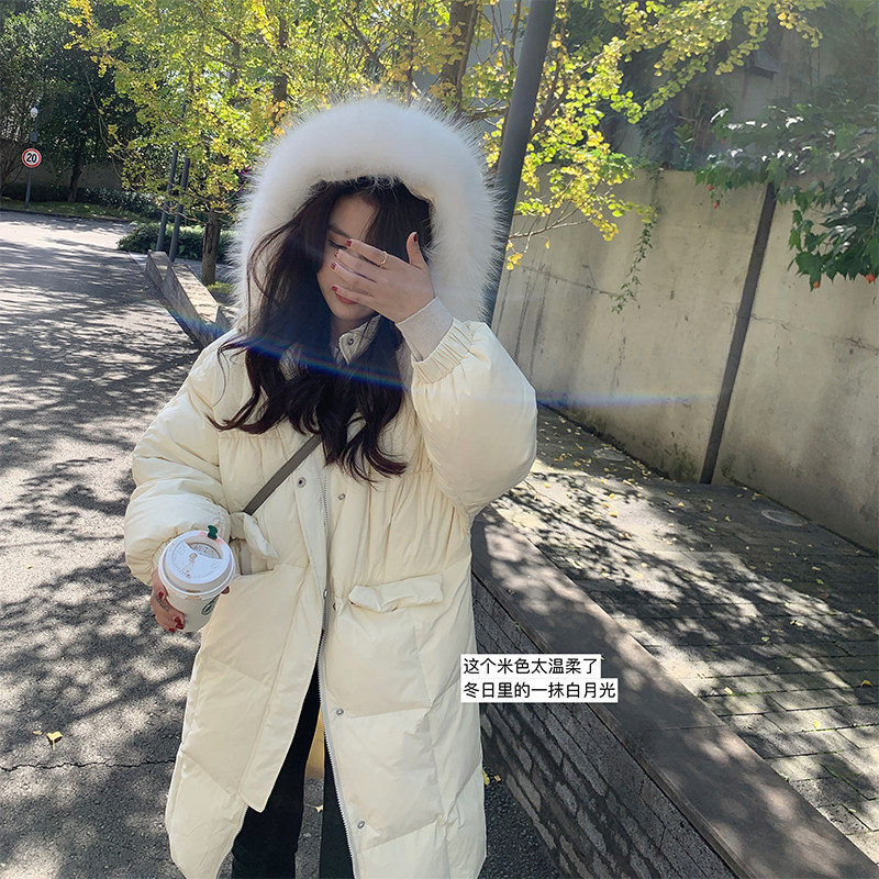 13 Good product small man light and warm~soft clouds down jacket female white duck down raccoon hair collar jacket