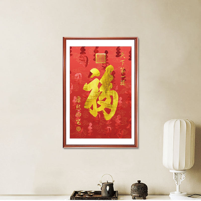 Fu character Chinese-style entry porch decorative painting vertical version aisle corridor end mural living room hanging painting