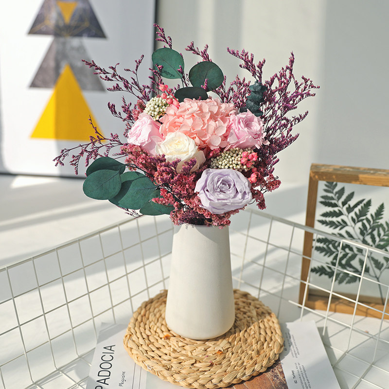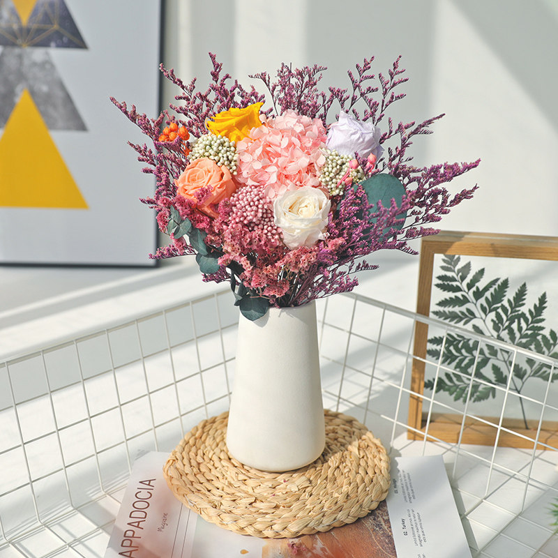 Eternal true flower Light luxury ins wind premium roses dried flower bouquet flowers diy materials Living room decoration ornaments