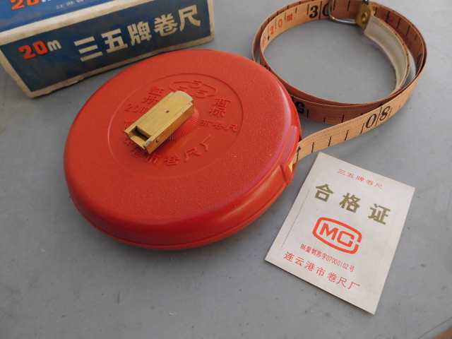 Nineties old goods three-five brand leather tape measure 15 meters 20 meters cloth tape measure disc ruler construction measuring ruler nostalgic measuring tool