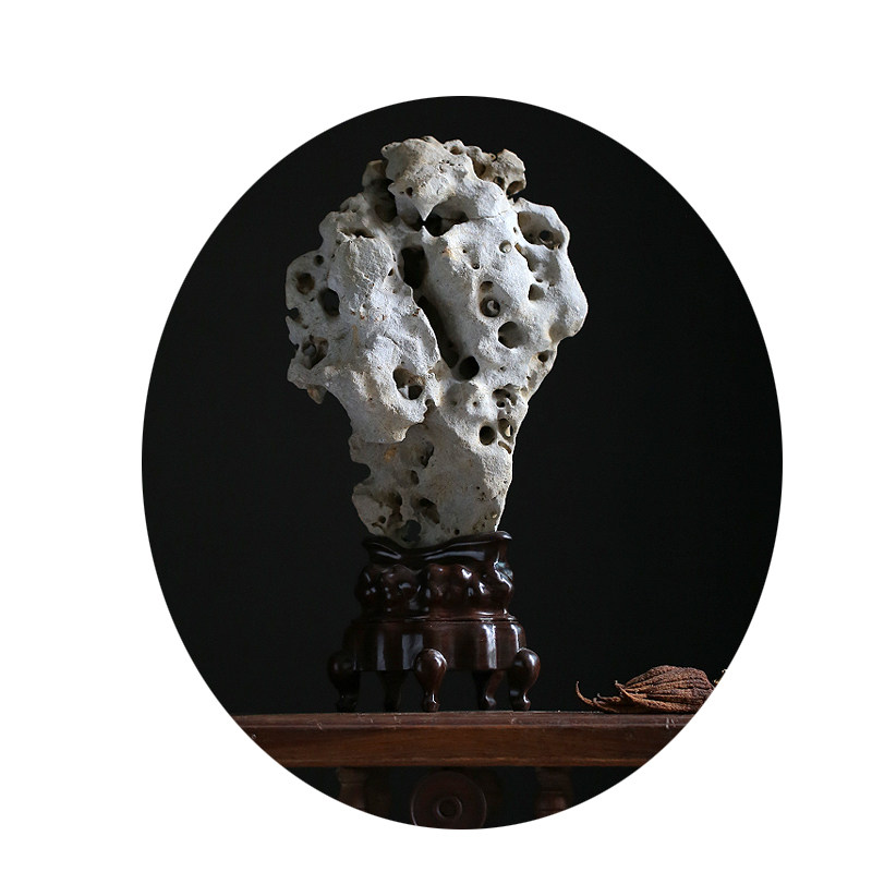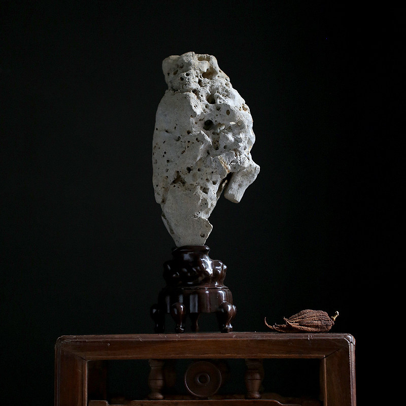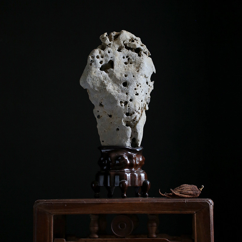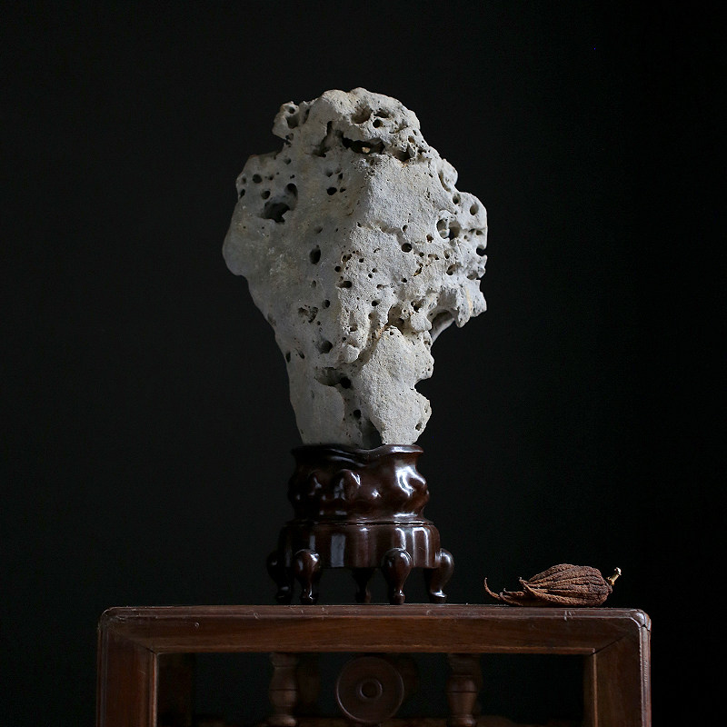 Quiet and late Qing for tea space book house case head Yashiite natural Taihu stone connoisseurywork black sandalwood base
