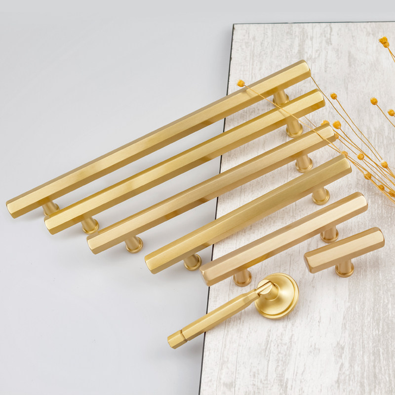 Pure brass cabinet door Modern simple clothing overall cabinet drawer Nordic single hole cabinet handle Gold light luxury hardware handle