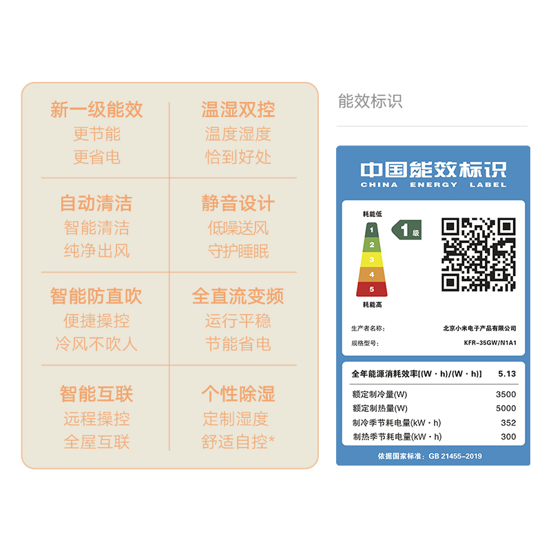 Xiaomi giant power saving air conditioning wall-mounted cold and cold dual-use 1 5 level energy efficiency frequency conversion home intelligent wall-mounted