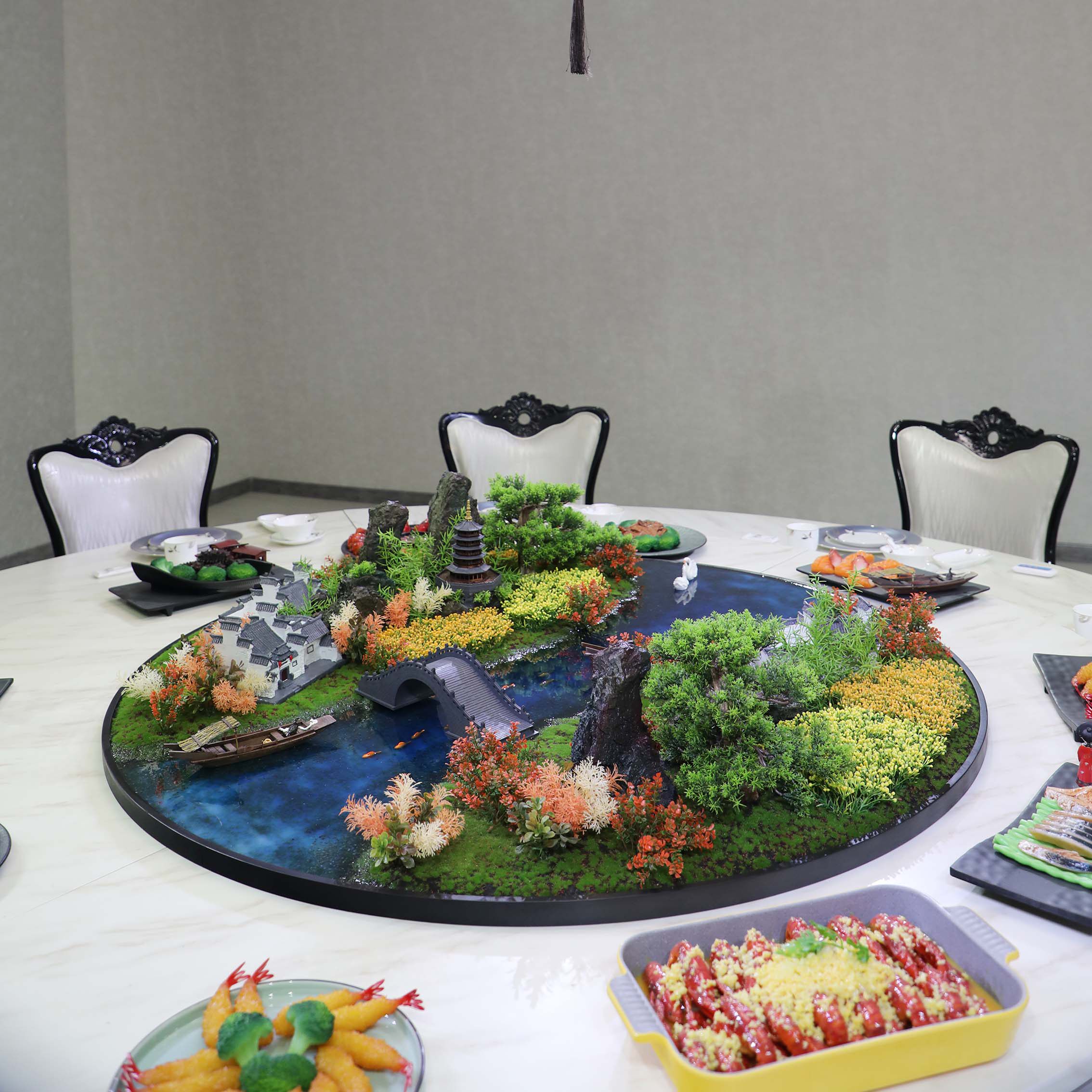 Dining table middle landscape ornaments large round table creative table flower decoration hotel box flower anti-real flower landscaping decoration