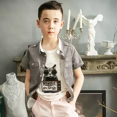 Lewen Jubilee fashion big boys' shirt 2021 summer new style English style Plaid breathable short sleeve teenager