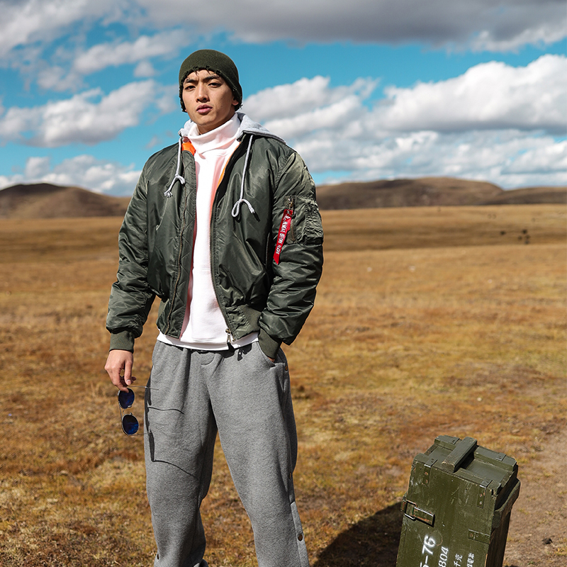 GUNCHILL military style retro MA-1 Air Force pilot jacket men's high street loose hooded cotton coat jacket tide