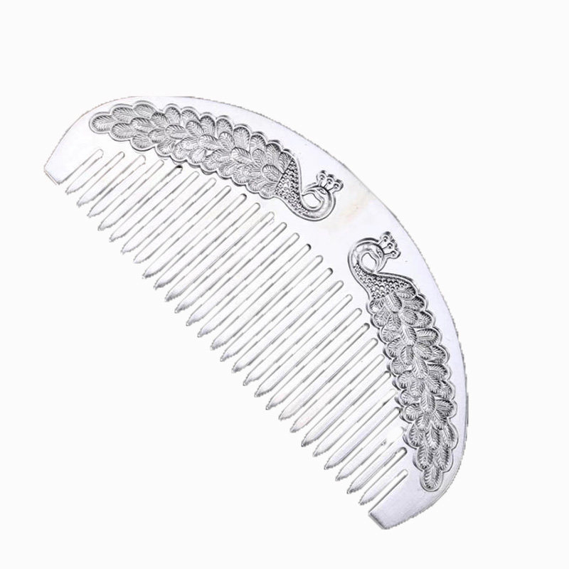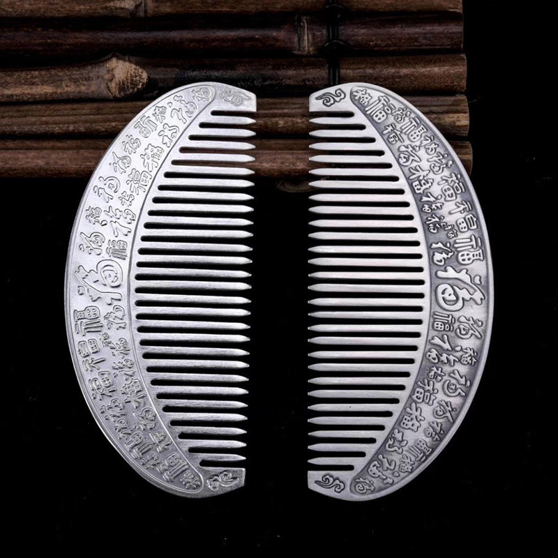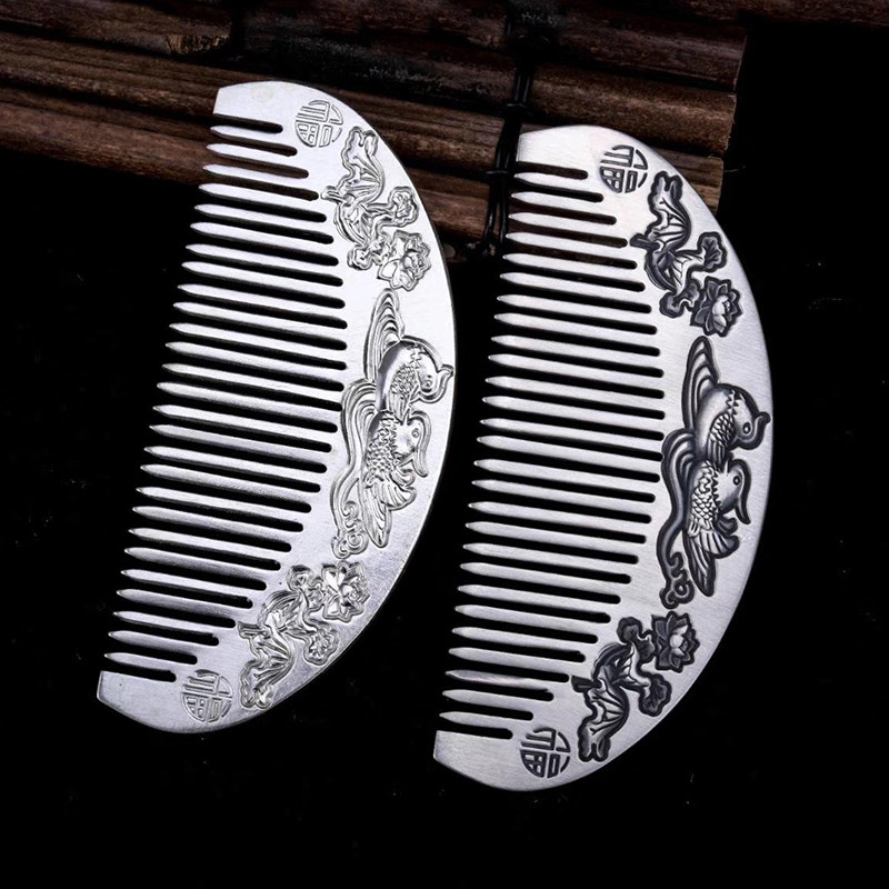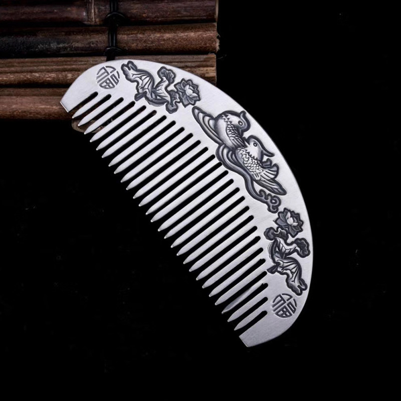 Xinhua Yinfu silver comb 999 sterling silver handmade double phoenix mandarin duck comb Momofu silver comb gift for mother
