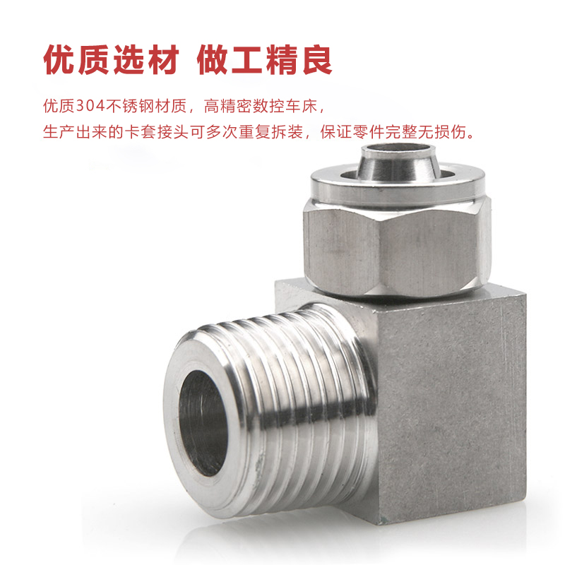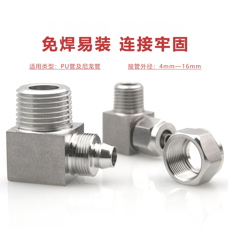 304 Stainless Steel Quick Screwing Elbow 90 Degrees Outer Wire Right Angle Terminal Bend PU tube hose Nylon tube ZG thread