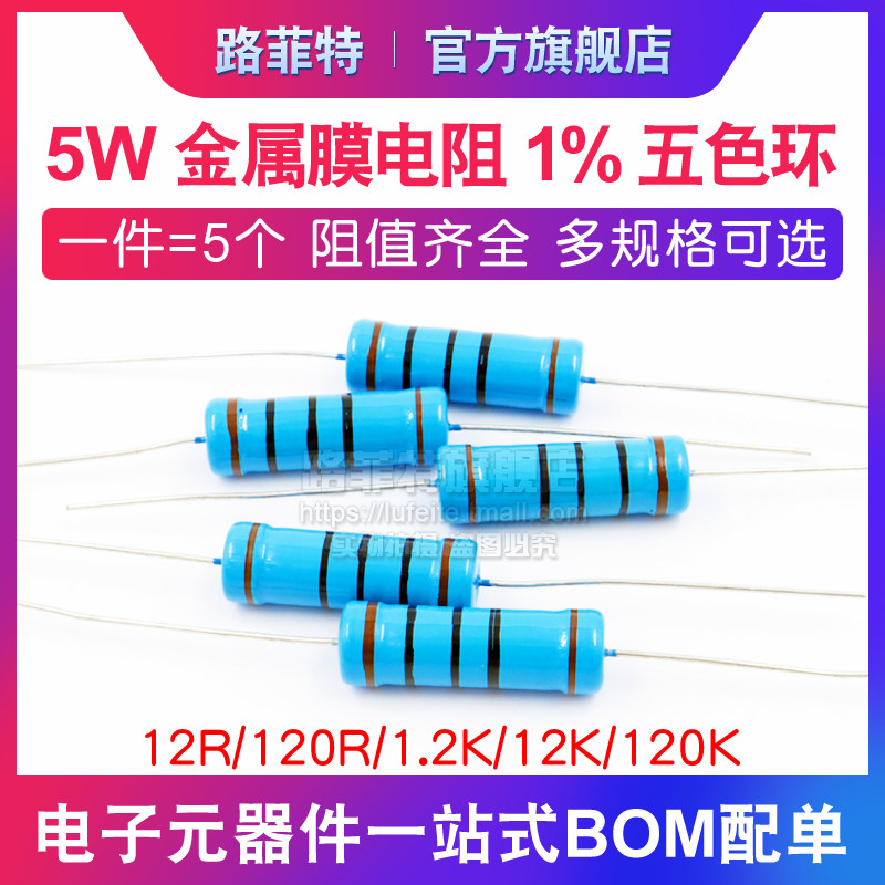 5W Metal Film Resistance 1% Five Color Ring 12R 1 120R 2K 12K 120K 120K Ohm resistor