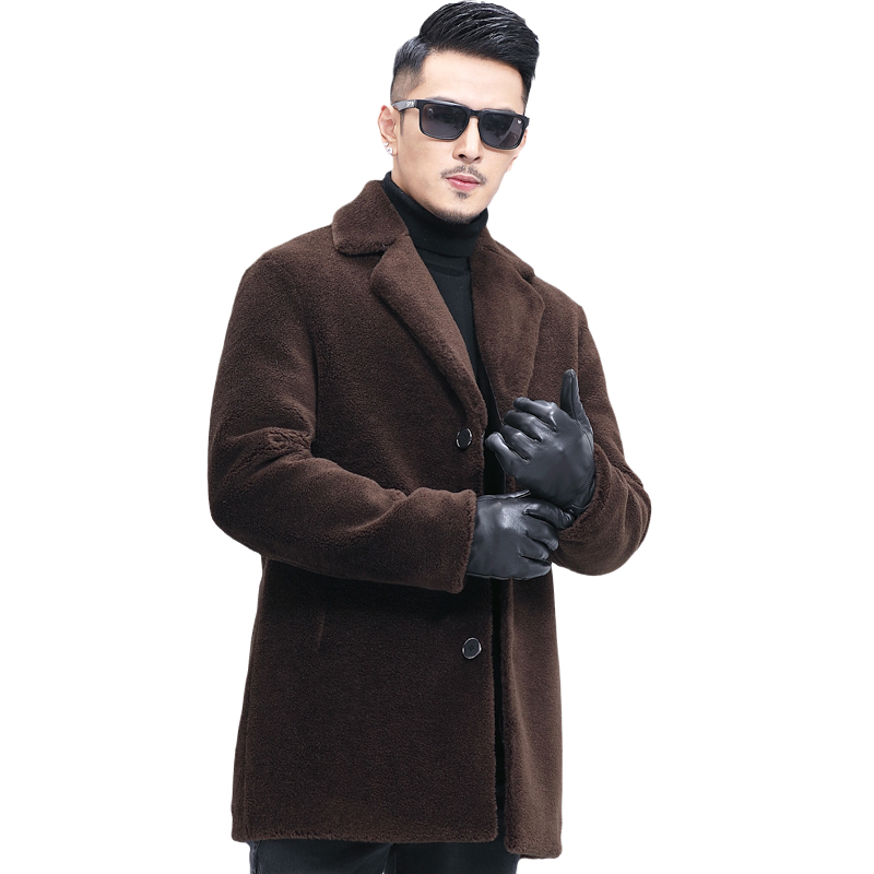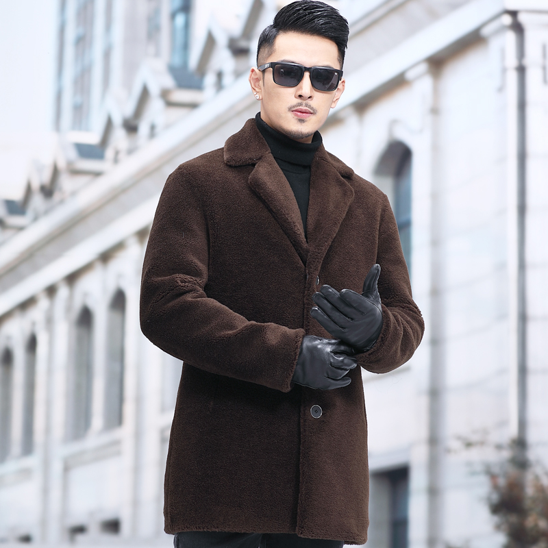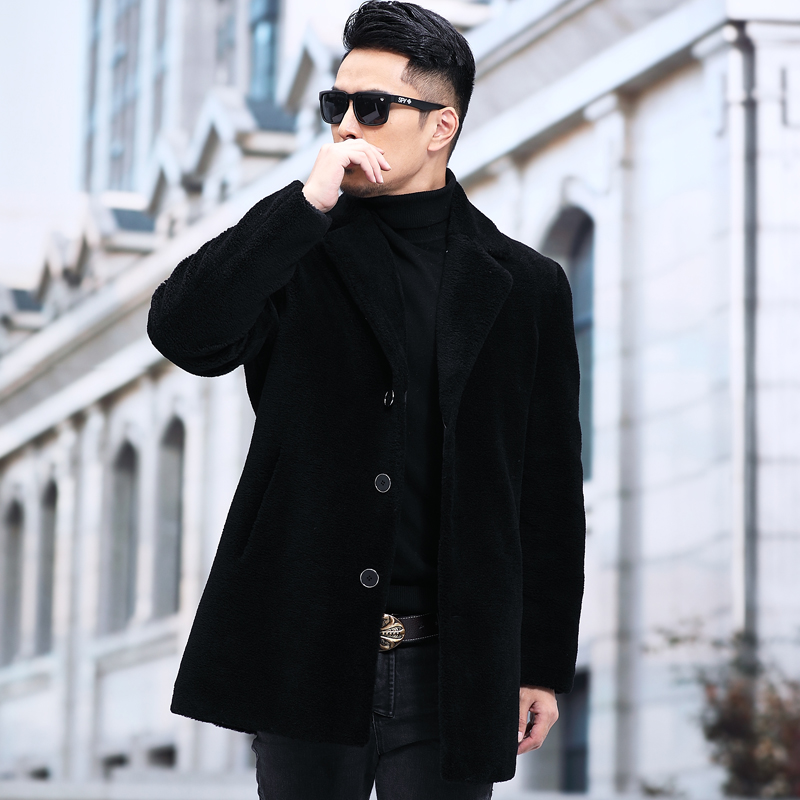 Winter Hainen sheep cut velvet coat leather grass men genuine leather medium long version of lamb fur integrated down jacket jacket