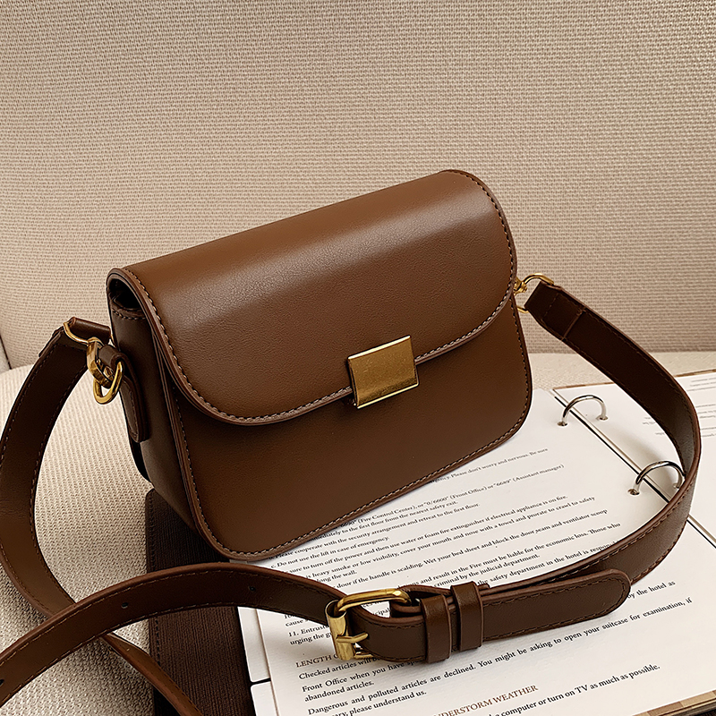 Bag Pack woman 2022 new Korean version Tide Comeback Ancient Brief Lock Catch Single Shoulder Skew Satchel Pure Color 100 Lapped Temperament Small Square Bag
