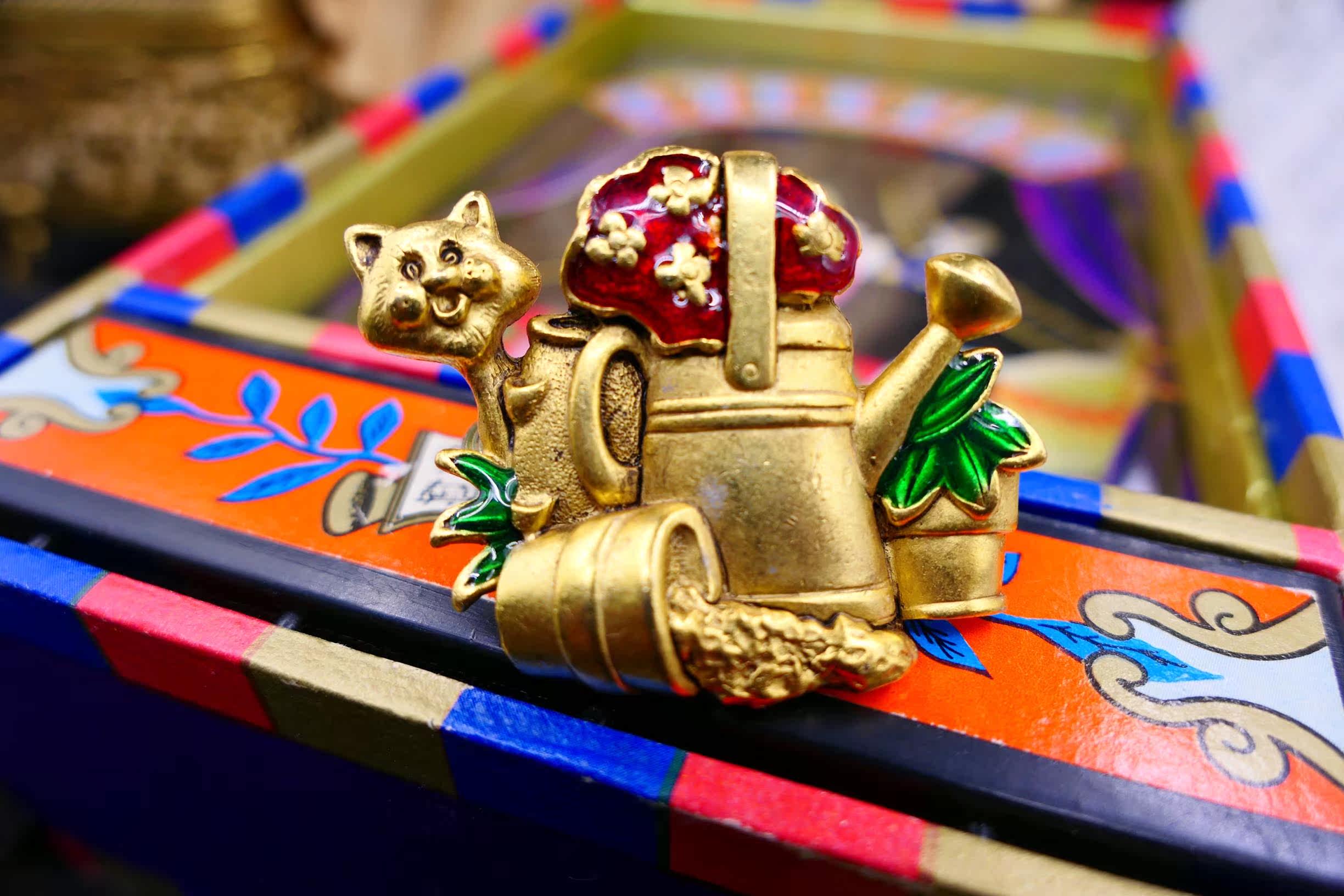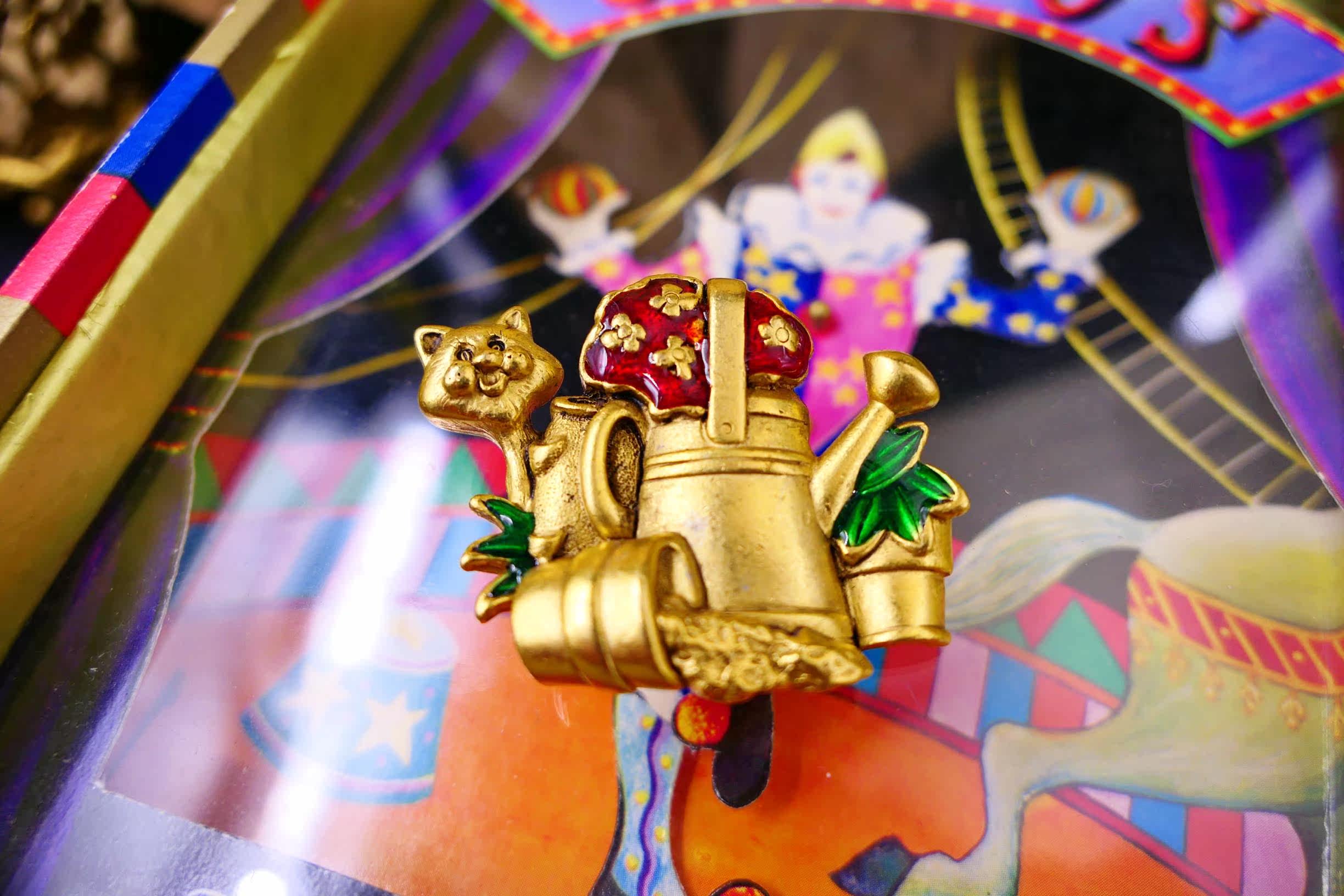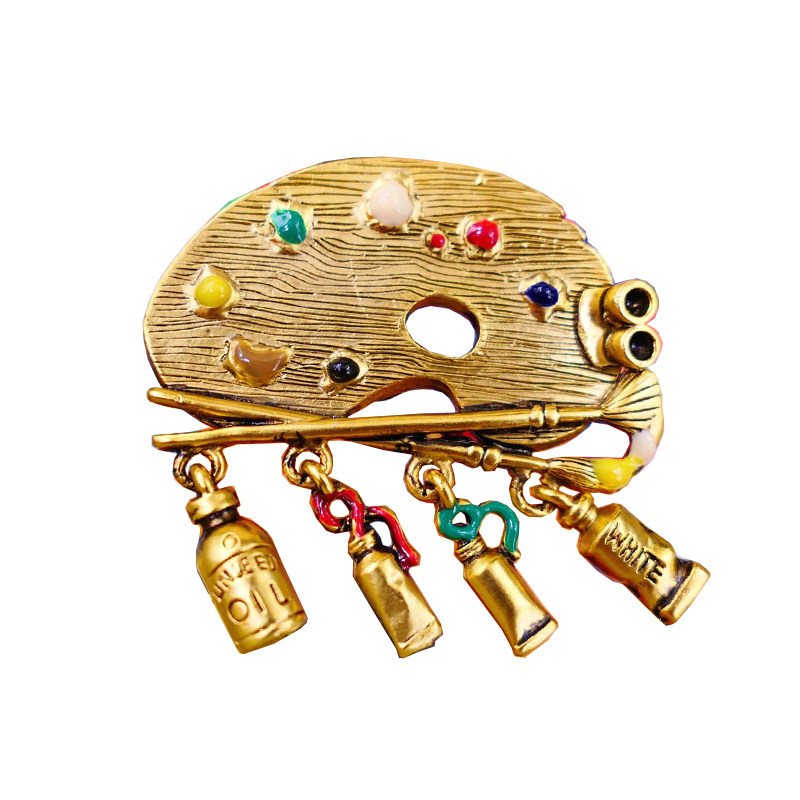Vintage American brand engraved niche artist oil painting board men and women gift retro cat exquisite brooch