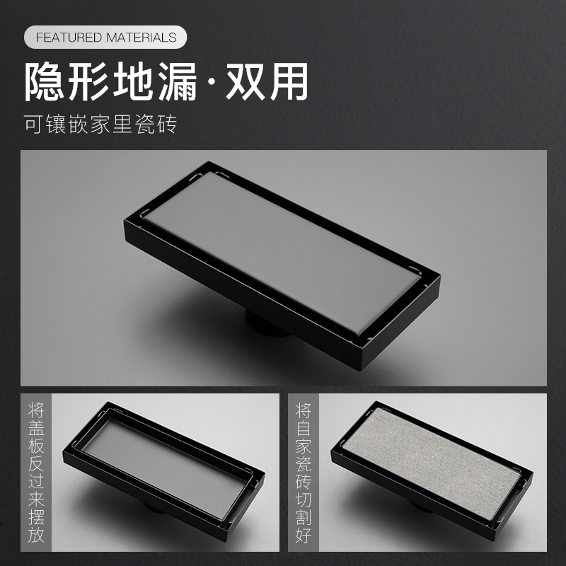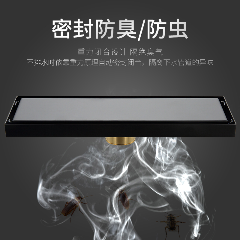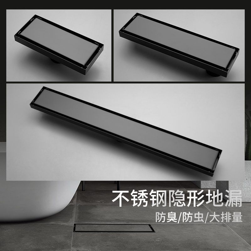Bathroom invisible lengthened deodorant floor drain bathroom black rectangular stainless steel floor drain shower room large displacement