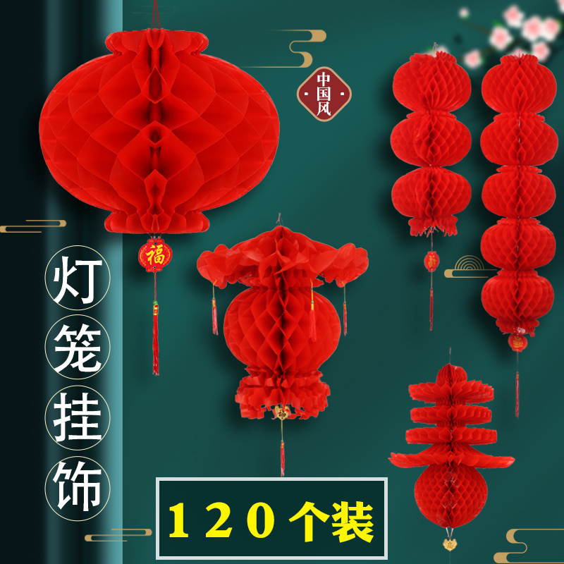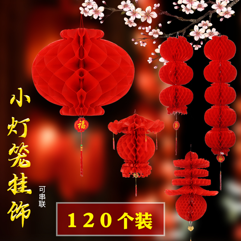 2021 New Year Lantern Festival New Year Decoration decoration Small red paper lantern string hanging decoration Outdoor tree scene decoration