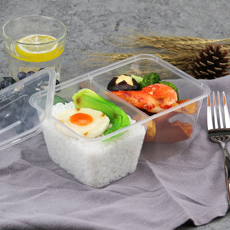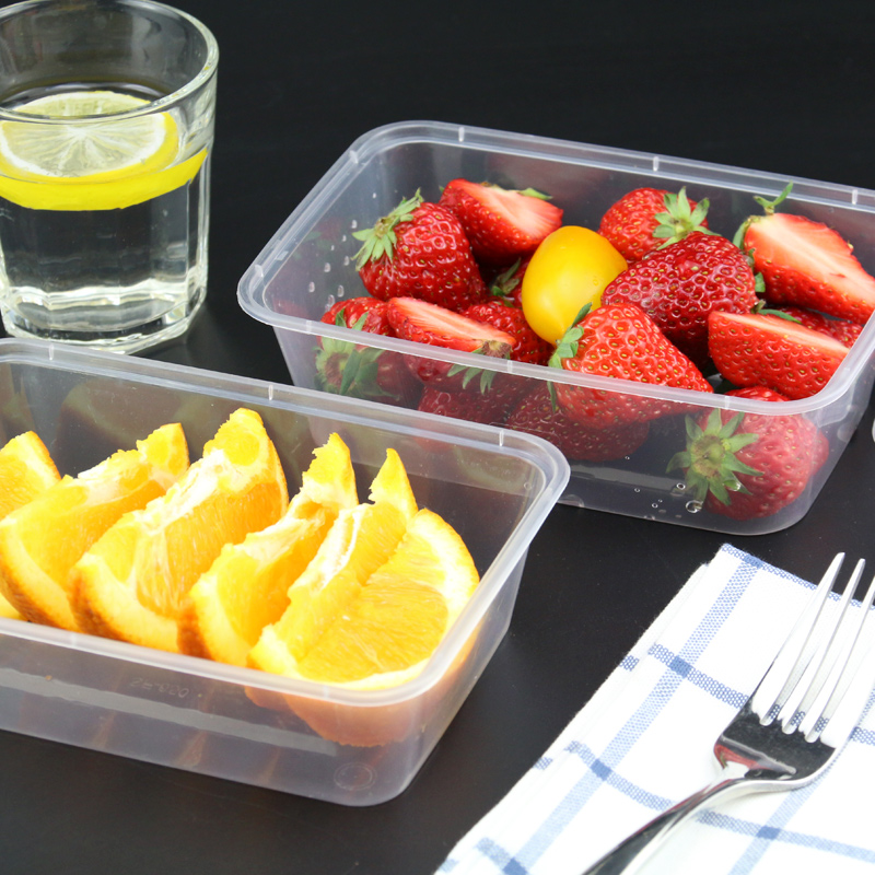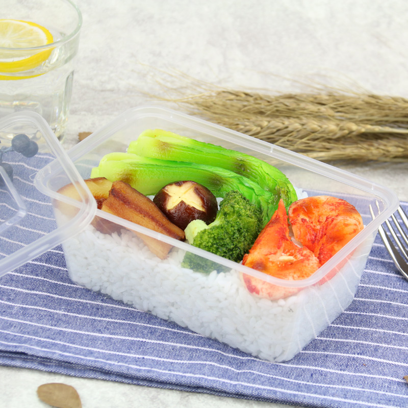 500 1000ml disposable lunch box packing box lunch box rectangular plastic transparent takeaway fast food commercial with lid