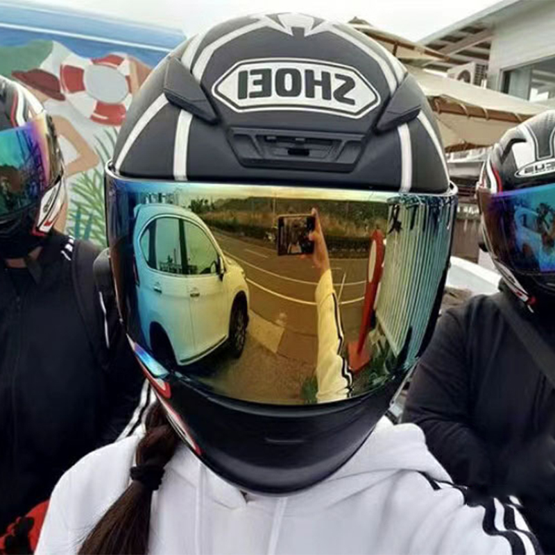 SHOEI helmet Z7 X14 original plating night vision discoloration lens anti - fog sticker RYD full helmet silver - plated black gold and blue
