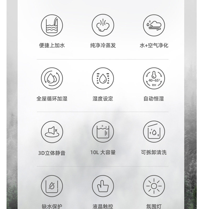 ZTK fog-free floor-to-ceiling purified air humidifier fog volume plus water Home bedroom Pregnant woman baby office