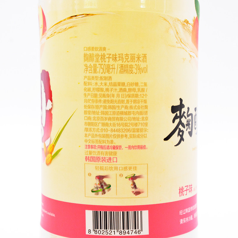 South Korea's original imported koji mellow Tang Margaret Margaret Margaret rice wine peach flavor 750ml*20 bottles