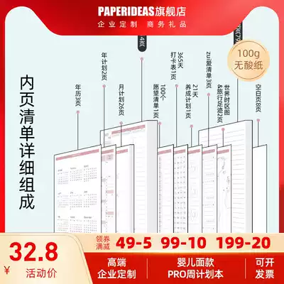 PAPERIDEAS 2021 day book Self-hand account skin sense vertical version timeline plan book notebook art exquisite notepad time management efficiency manual punch card custom logo