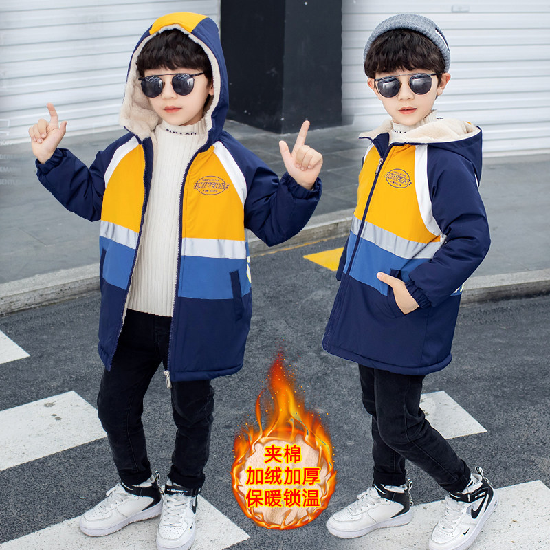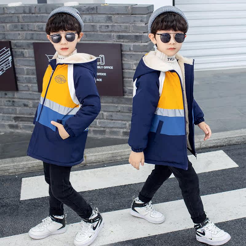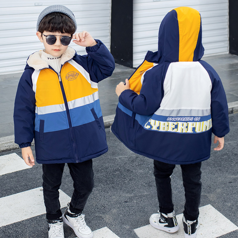 Boy Winter Clothing Jacket 2020 New Plus Cotton Thickened Rabbit Mullet Parquet Color Jacket