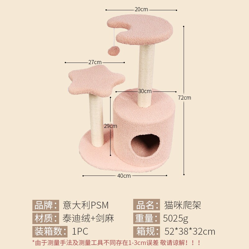 Cat climbing frame cat nest cat tree one climbing sisal rope grab column flannel villa grinding claw star moon cat toy cat supplies