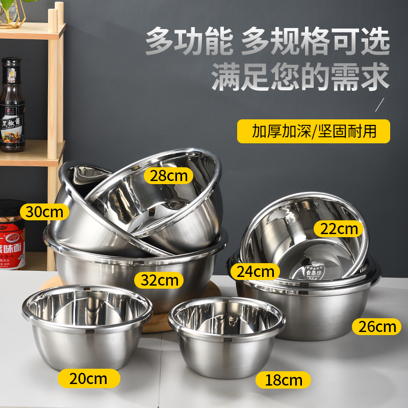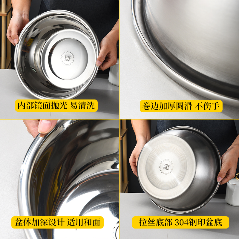 Food-grade 304 stainless steel basin household kitchen egg beater and basin washing vegetables baking extra-large basin extra-thick bowl male