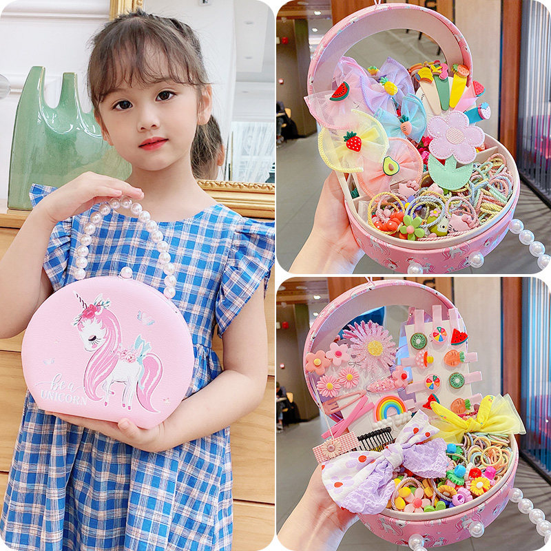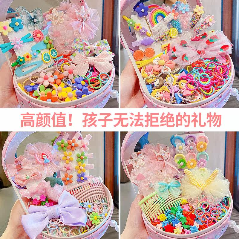 Children's Hair Accessories Gift Box Girl Net Red HairPin Hair Ring Princess Broken Hair Card Little Girl Head Rope Leather Band HairBand HairBand Clip