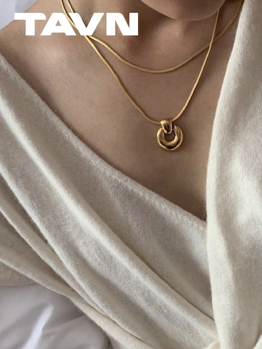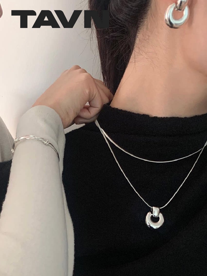 TAVN Korean niche Coldframe RetroCrescentMoon crescent gold and silver necklace necklace